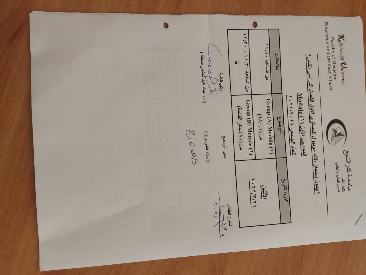 جدول امتحان الاند موديول للمستوي الاول وتوزيع اللجان الفصل الدراسي الثاني للعام الجامعي 2021/2022
