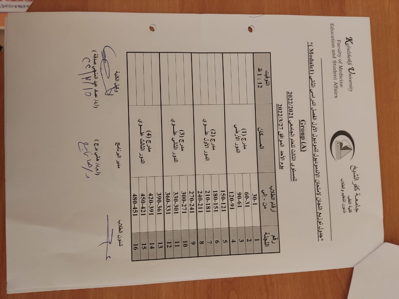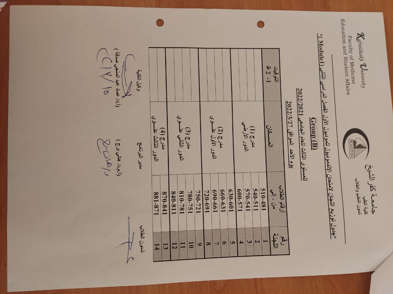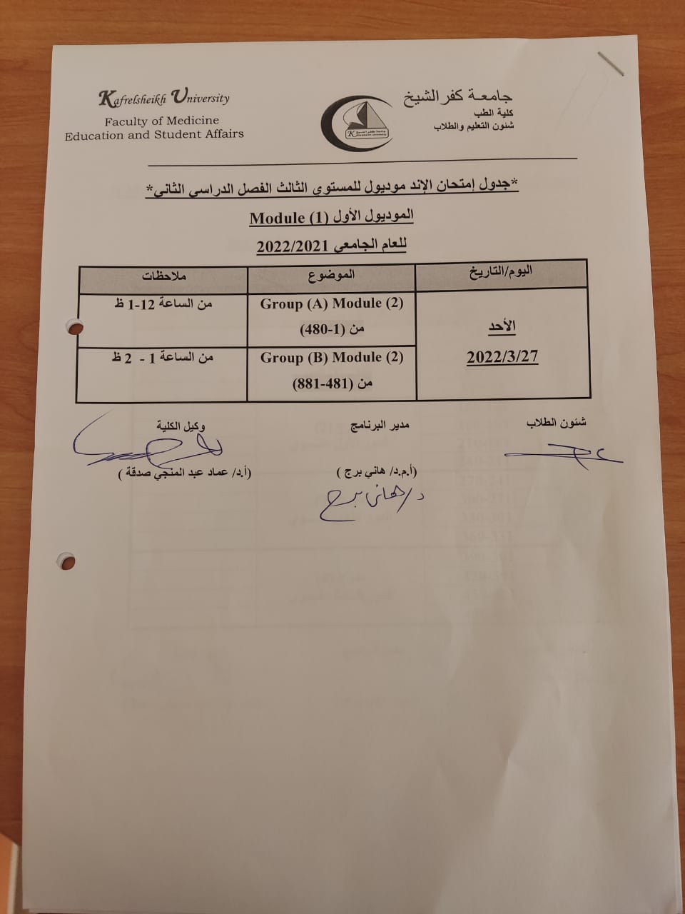 جدول امتحان الاند موديول للمستوي الثالث للفصل الدراسي الثاني للعام الجامعي 2021/2022
