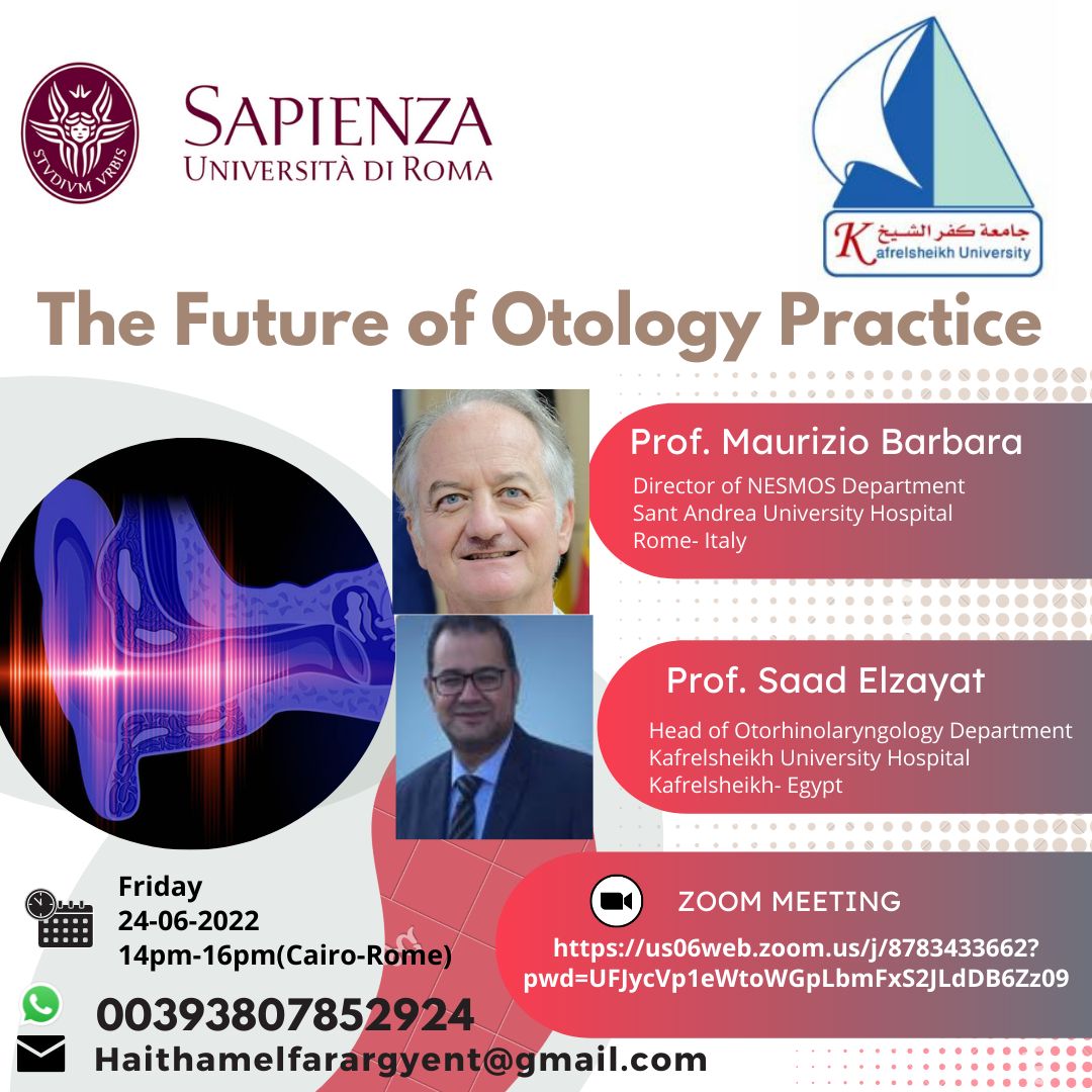 اللقاء العلمي المشترك لقسم الانف والاذن بين كلية الطب جامعه كفر الشيخ وجامعه سابينزا بايطاليا