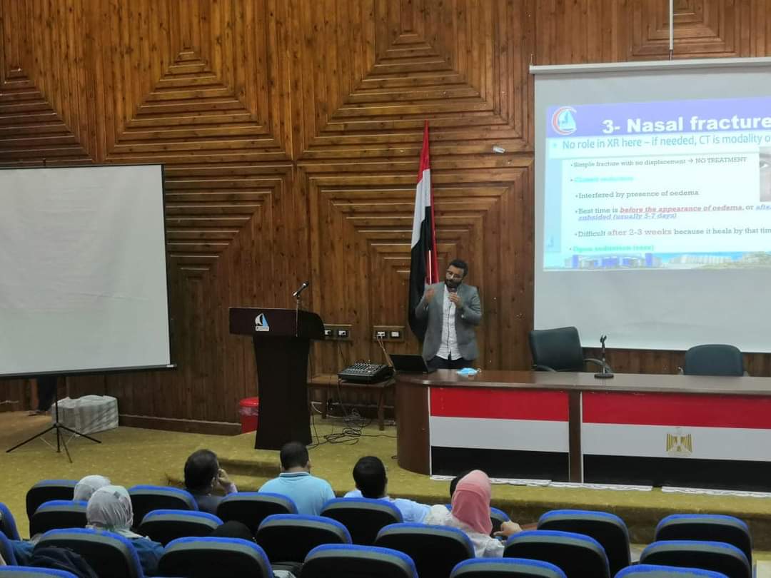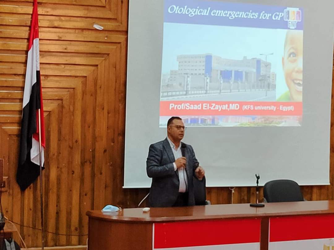 الأحد الموافق 17/7/2022 بتنظيم فعاليات اليوم العلمي لقسم الأنف والاذن والحنجرة عن طوارئ التخصص تحت إشراف الأستاذ الدكتور/ سعد الزيات رئيس قسم الأنف والاذن وأعضاء هيئة التدريس بالقسم حيث حاضر الدكتور محمد الديب والدكتور ابراهيم عزام والدكتور محمد عوف بقسم الأنف والاذن وبحضور طلاب الامتياز بالمستشفى الجامعي وعدد من أعضاء هيئة التدريس بالكلية.