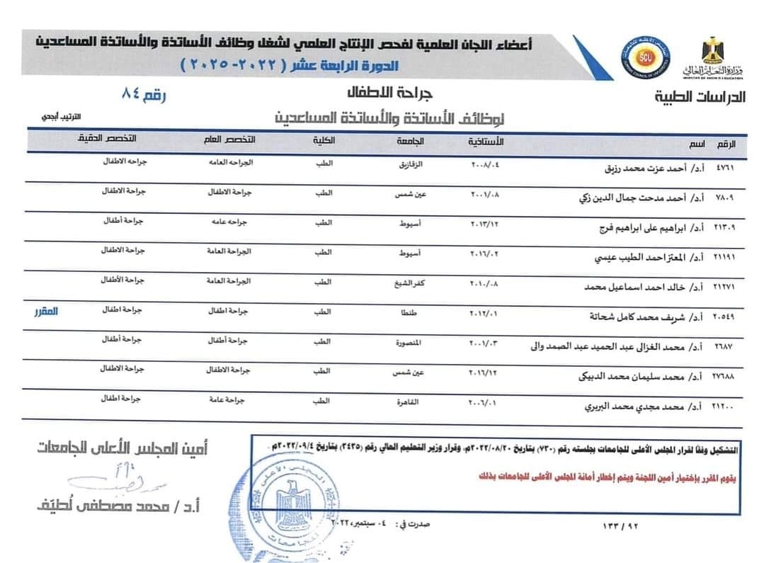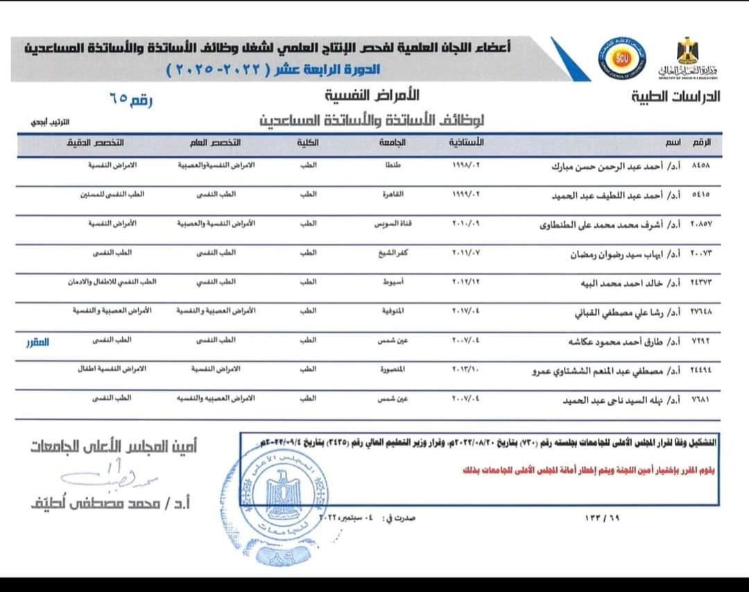 لترشيح سيادتهم علي راس الاساتذه في لجان الترقي