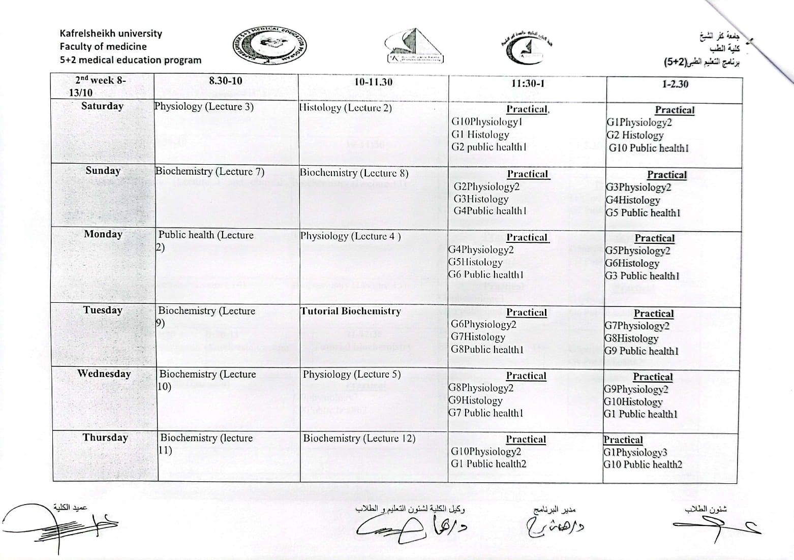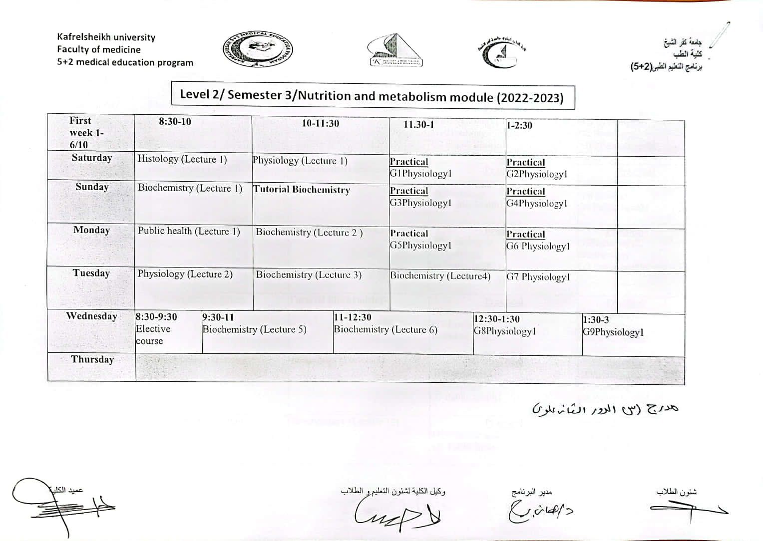 جدول المستوي الثاني للعام الجامعي 2022/2023