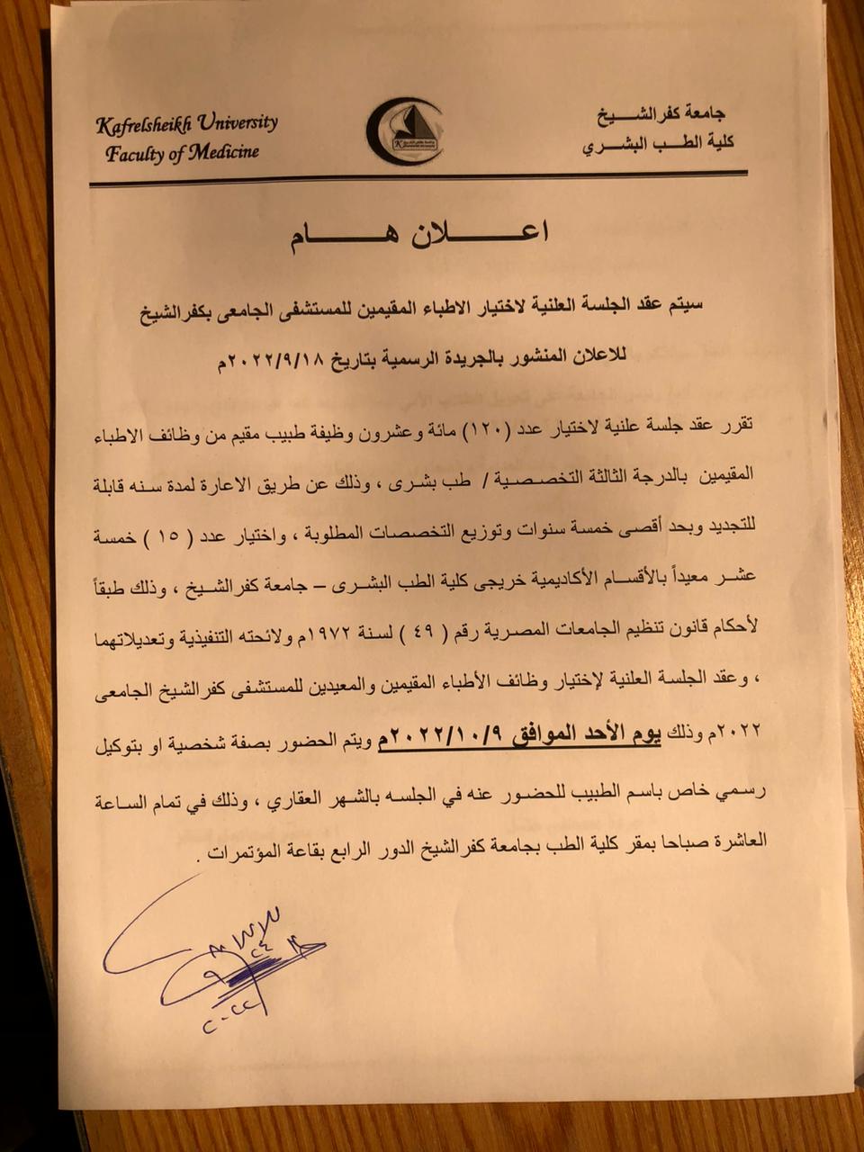 الجلسة العلنية لاختيار الاطباء المقيمين بالمستشفي الجامعي 2022