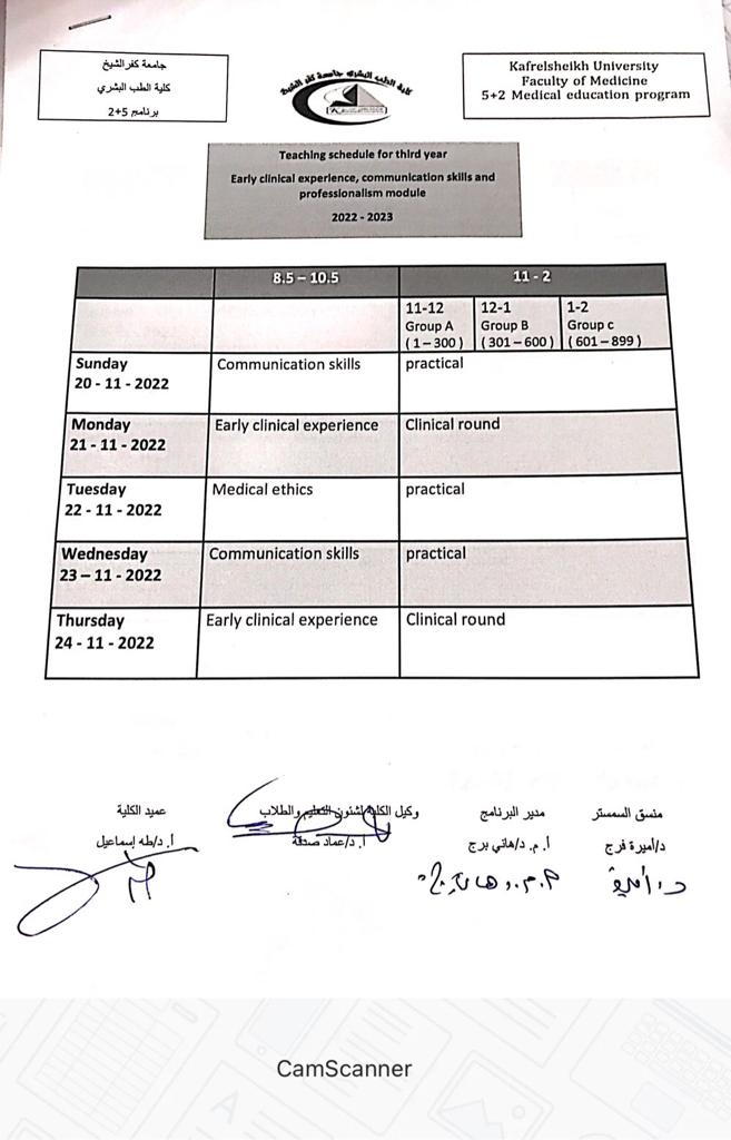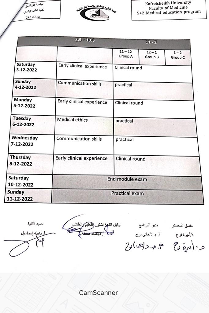 جدول الموديول الثالث للمستوي الثالث للعام الجامعي 2022/2023