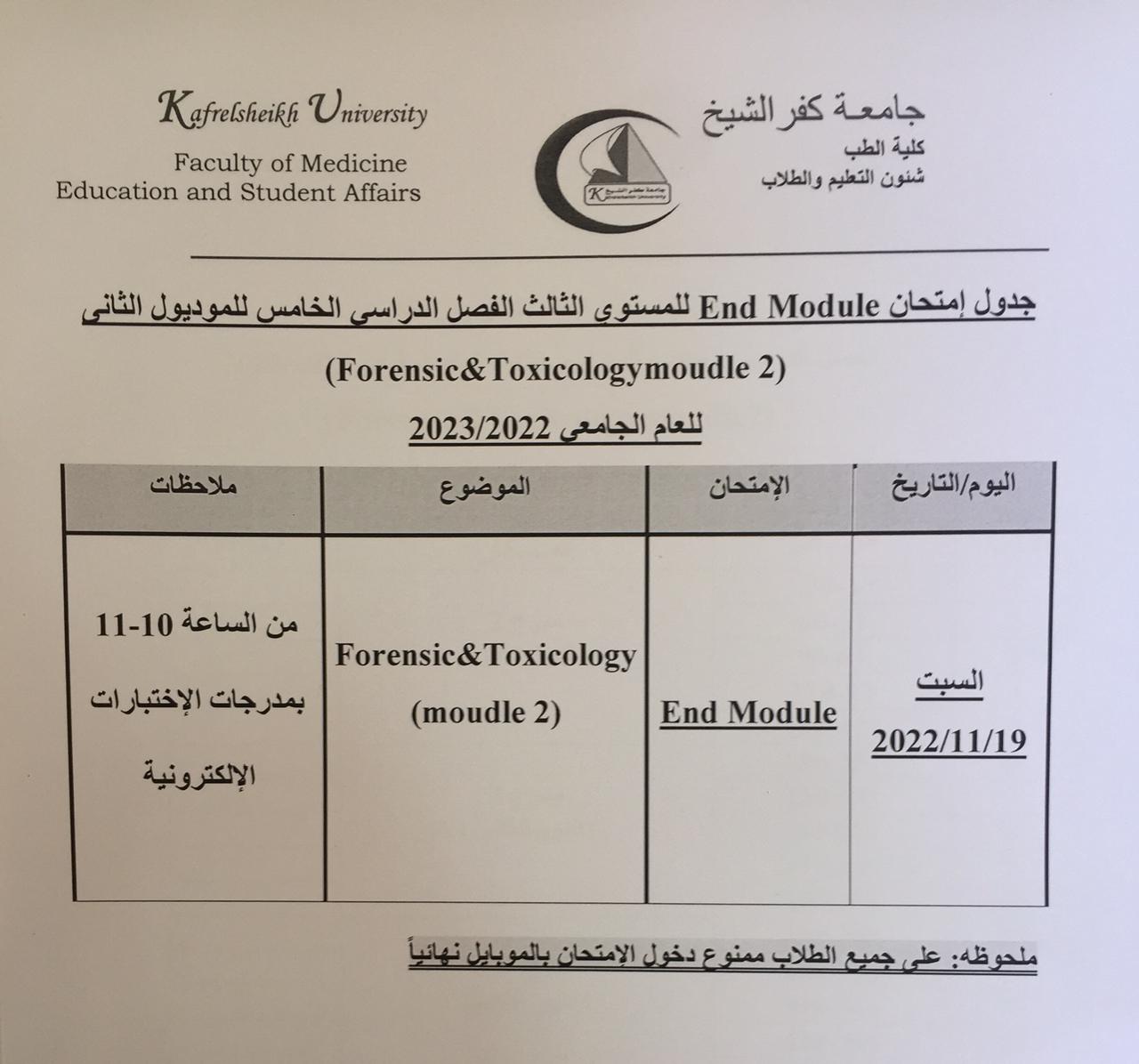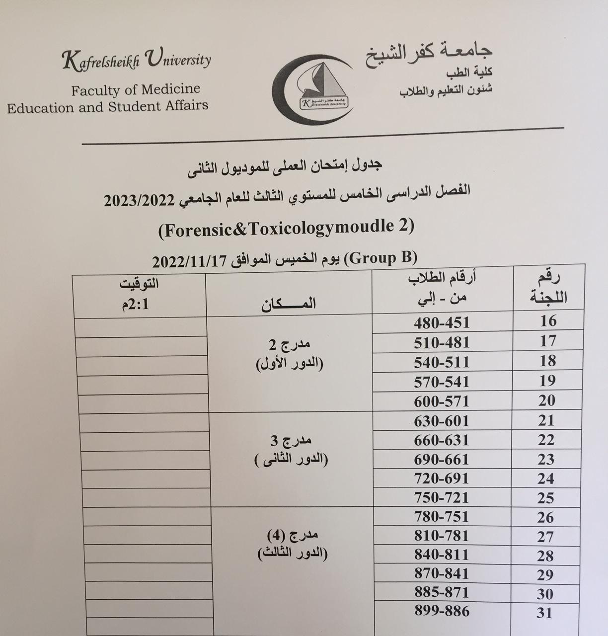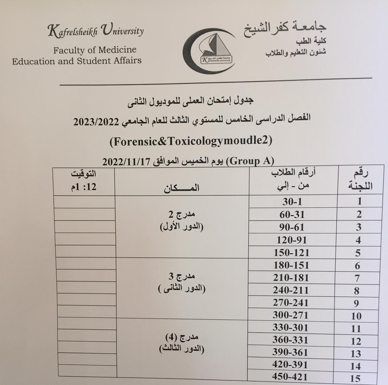 جدول امتحان العملي والاند موديول للمستوي الثالث للعام الجامعي 2022/2023