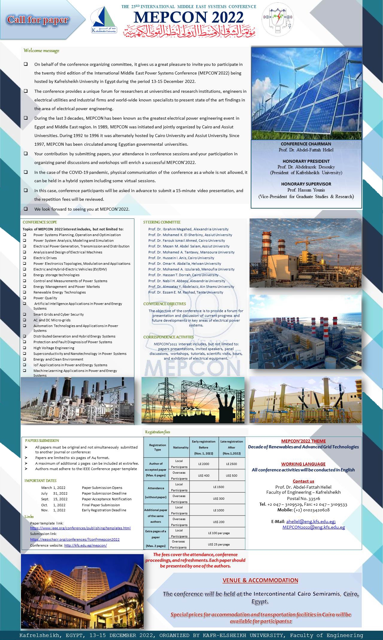 The 23rd International Middle East Power Systems Conference (MEPCON)