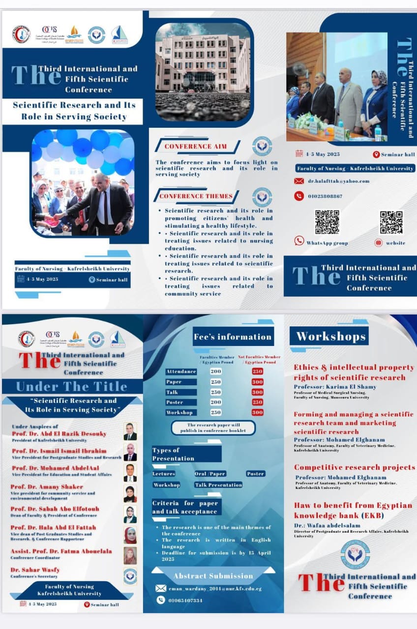 اليوم العلمي لقسم التمريض النفسي والصحة النفسية بعنوان "الرعاية النفسية الأولية في مواجهة الأزمات : التعافي والصمود"
