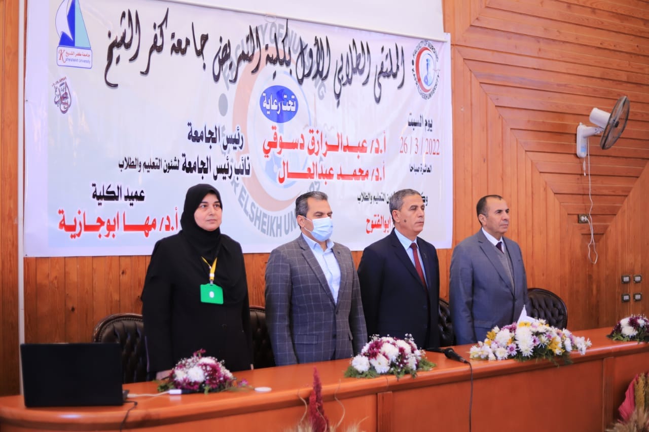 تحت رعاية أ.د عبدالرازق دسوقي رئيس الجامعة و ا.د محمد عبدالعال نائب رئيس الجامعة لشئون التعليم والطلاب و أ.د مها ابو جازية عميد الكلية وا.م.د صباح ابو الفتوح وكيل الكلية لشؤون التعليم والطلاب أقيمت يوم السبت الموافق 26 مارس 2022 فاعليات الملتقى الطلابي الاول لكليات التمريض بالجامعات المصرية تحت عنوان التكامل بين النظرية والتطبيق فى مجال التمريض هذا وقد لاقى المؤتمر صدى كبيرا على مستوى الصحافة الرقمية وقامت عدة صحف بنقل فاعليات المؤتمر ومن الجدير بالذكر ووجود معرض فنى لطلبة جامعة كفرالشيخ على هامش المؤتمر