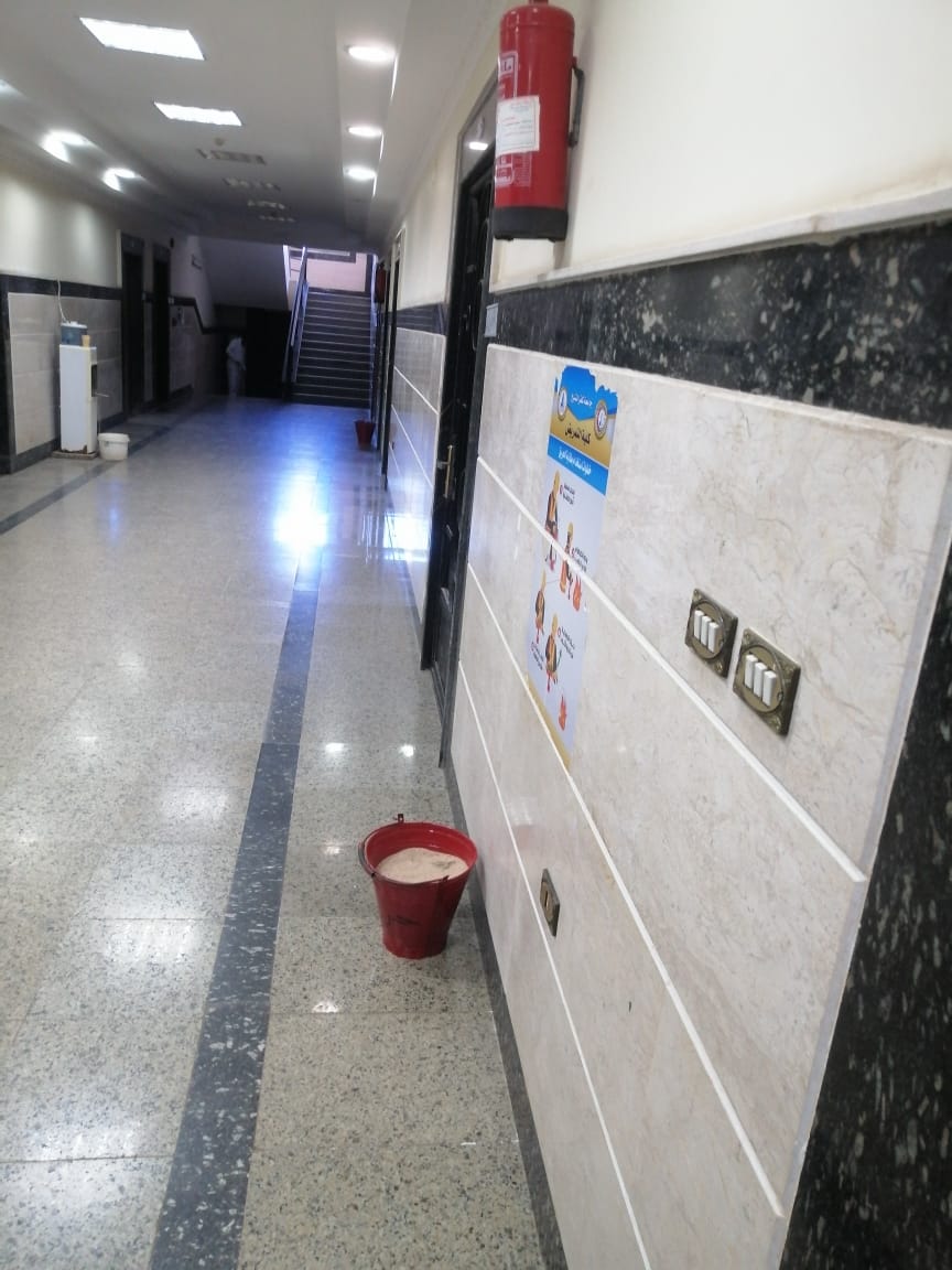 تم توزيع جرادل رمل لاطفاء الحريق بالكلية على الادوار كل دور 6 جرادل رمل