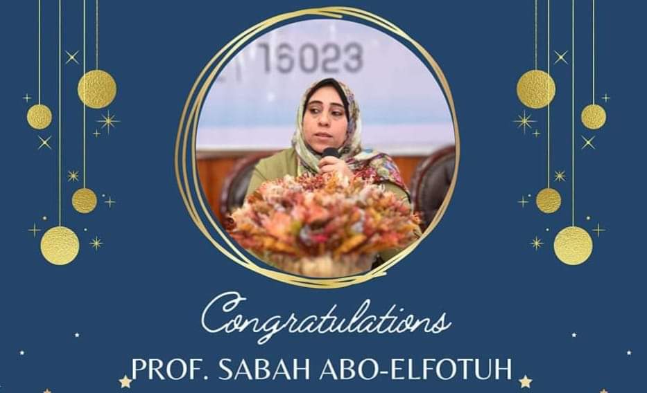 تتقدم أ.د مها ابو جازية عميد الكلية وأسرة كلية التمريض بخالص التهانى القلبية للاستاذة الدكتورة صباح ابو الفتوح وكيل الكلية لشؤون التعليم والطلاب وذلك لترقية سيادتها لدرجة استاذ متمنين لها دوام الرقى والتقدم