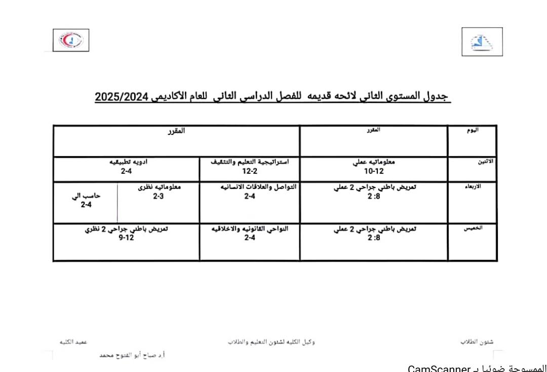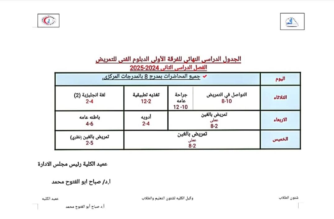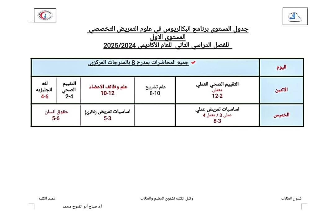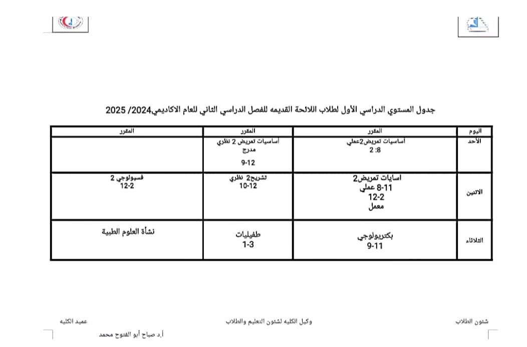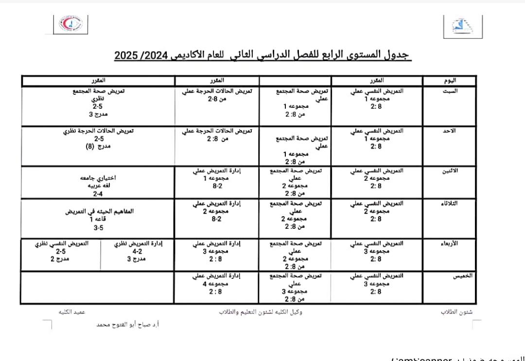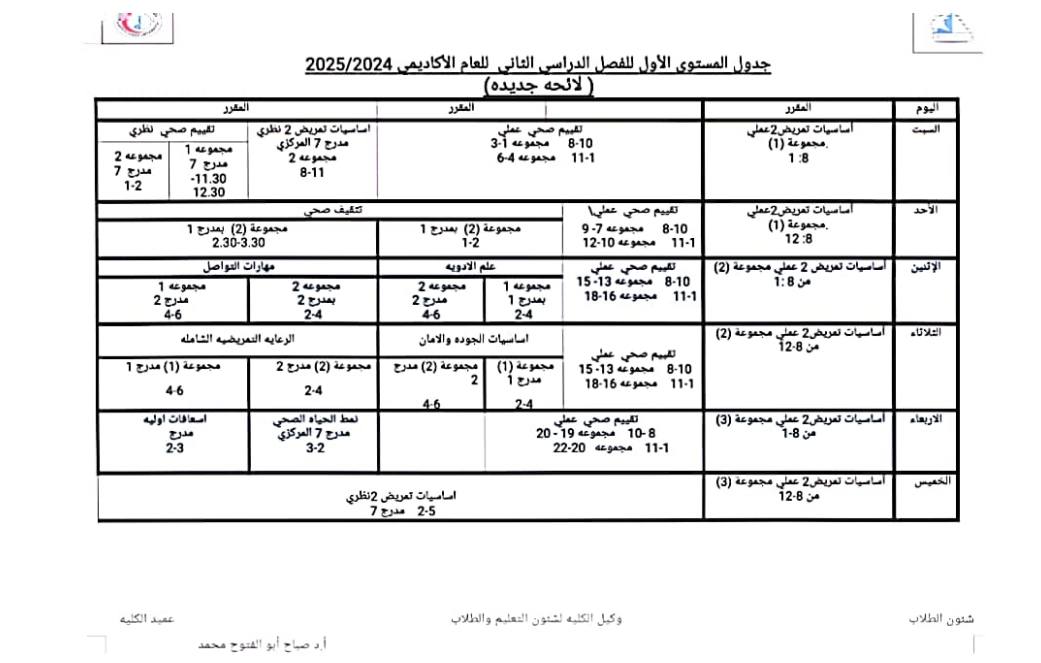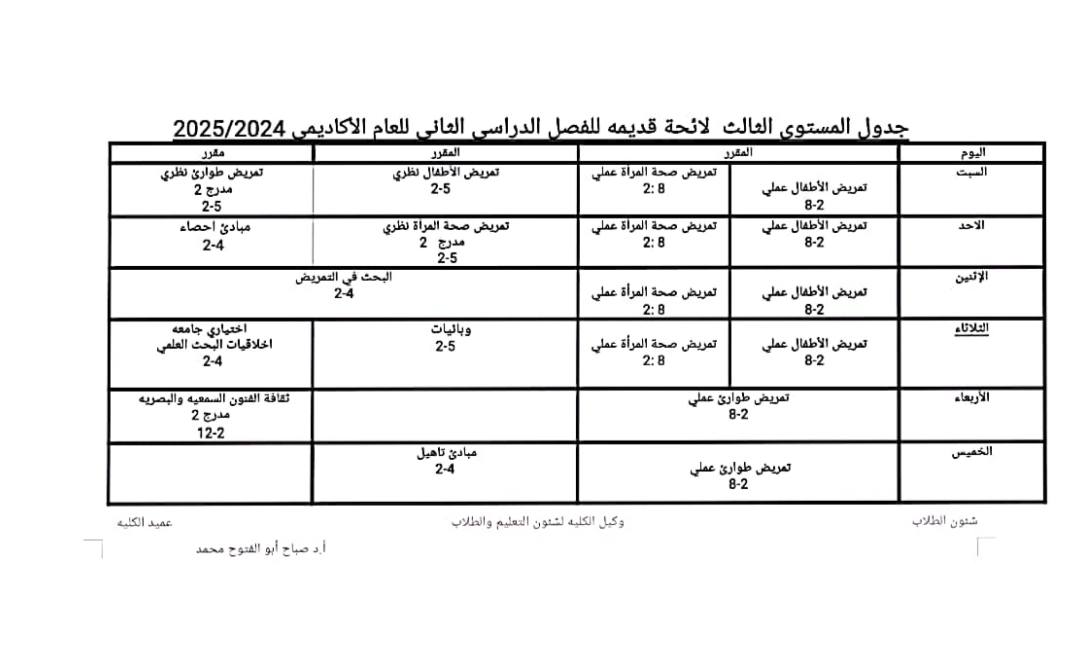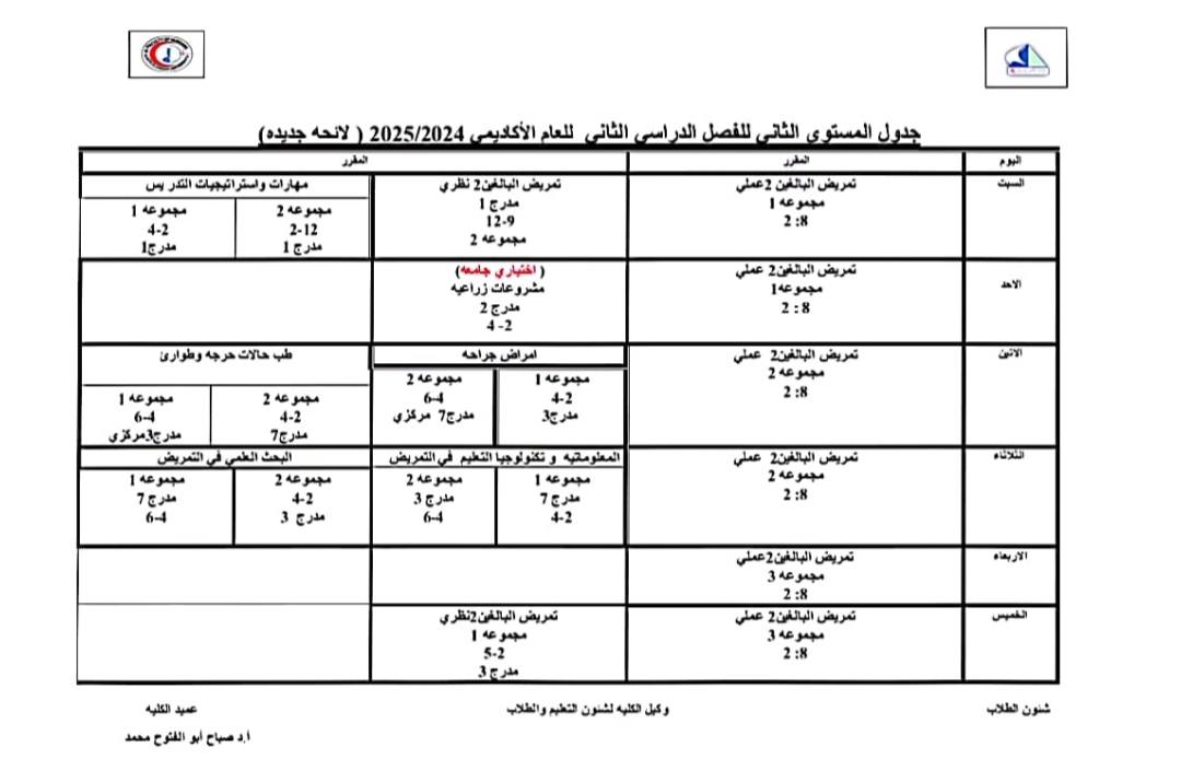 الجداول الدراسية للفصل الدراسي الثاني للعام الجامعي 2024/2025م