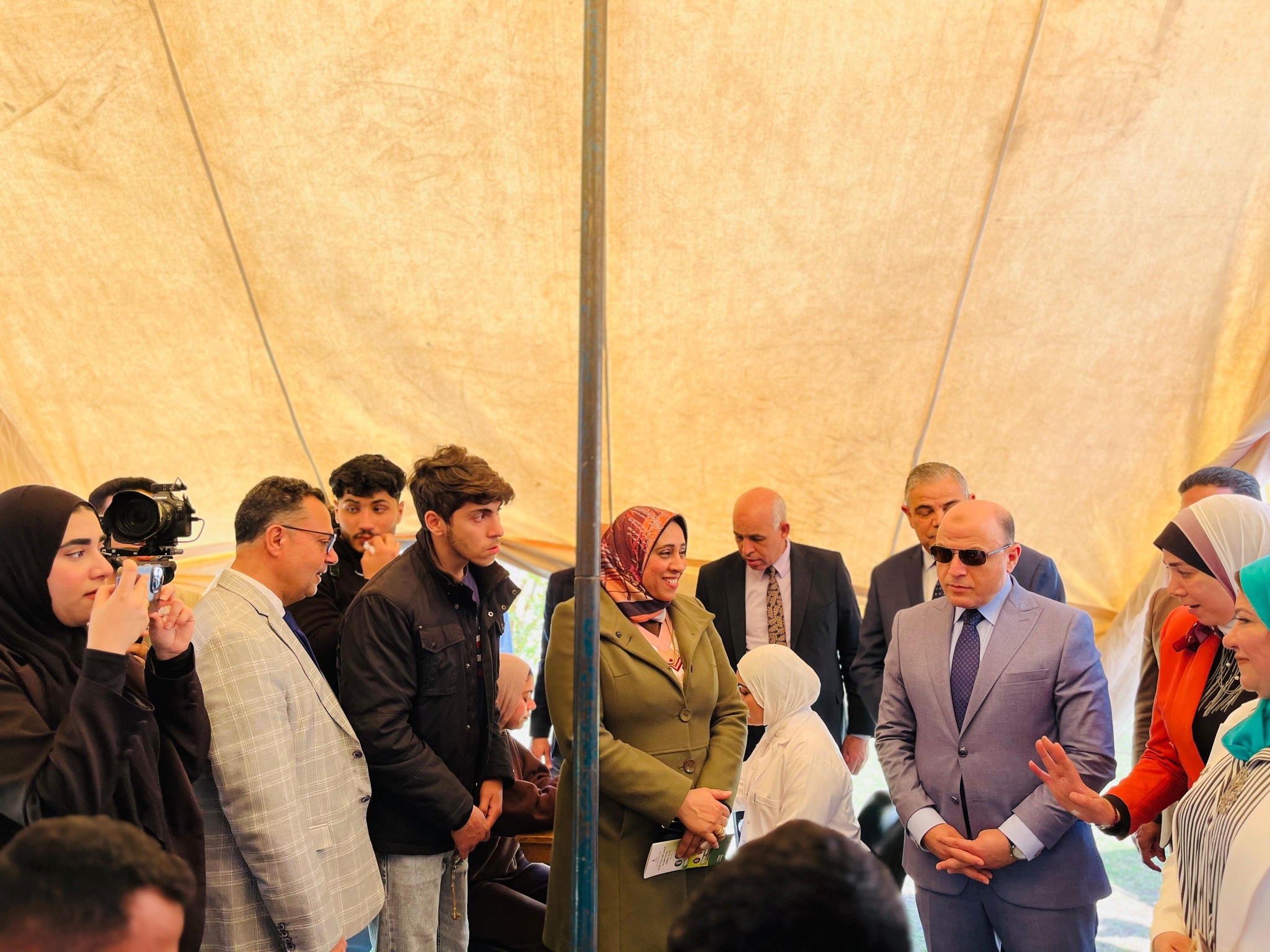 عقب ذلك قام الدكتور عبد الرازق دسوقي رئيس جامعة كفر الشيخ يرافقة اللواء دكتور علاء عبد المعطي محافظ كفرالشيخ، بأفتتاح معسكر كلية التمريض بالجامعة للكشف عن مرض السكر وضغط الدم المرتفع والسمنه والنحافه وقياس الطول والوزن، ضمن فعاليات الأسبوع البيئي لجامعة كفر الشيخ بخيمه الجواله امام مبني الكلية، لكل اعضاء هيئة التدريس والهيئة المعاونة وجميع العاملين وطلبة الجامعة، تحت اشراف الدكتور صباح ابو الفتوح عميد كلية التمريض، والدكتور نجوي جوده وكيل الكلية لشئون خدمة المجتمع وتنمية البيئة