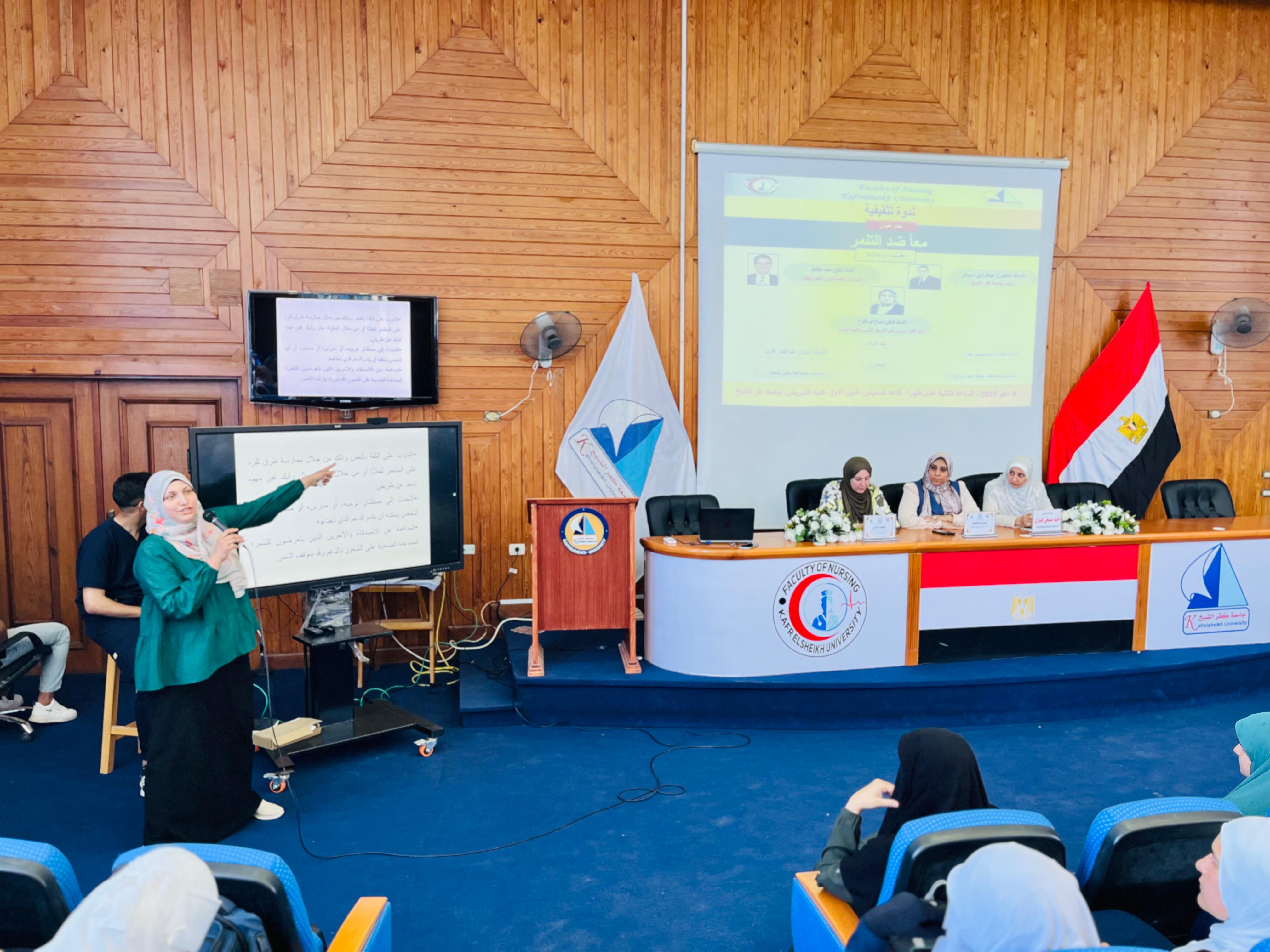 تحت رعاية الأستاذ الدكتور صباح أبو الفتوح، عميد الكلية. نظمت كلية التمريض بجامعة كفر الشيخ ندوة توعوية بعنوان "معًا ضد التنمر"، وذلك في إطار توجيهات وزارة التعليم العالي لمواجهة ظاهرة التنمر وتعزيز الوعي المجتمعي، جاءت الندوة تحت إشراف الأستاذ الدكتور أمنية العياري، أستاذ مساعد التمريض النفسي والصحة النفسية، والأستاذ الدكتور هبة غازي، أستاذ تمريض صحة المجتمع، بمشاركة أعضاء هيئة التدريس وطلاب الكلية.