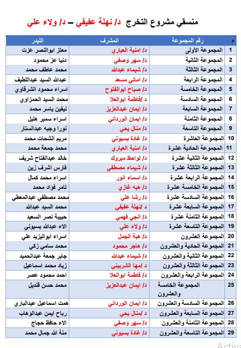 توزيع مجموعات مشروع التخرج. للعام ٢٠٢٥ / ٢٠٢٦