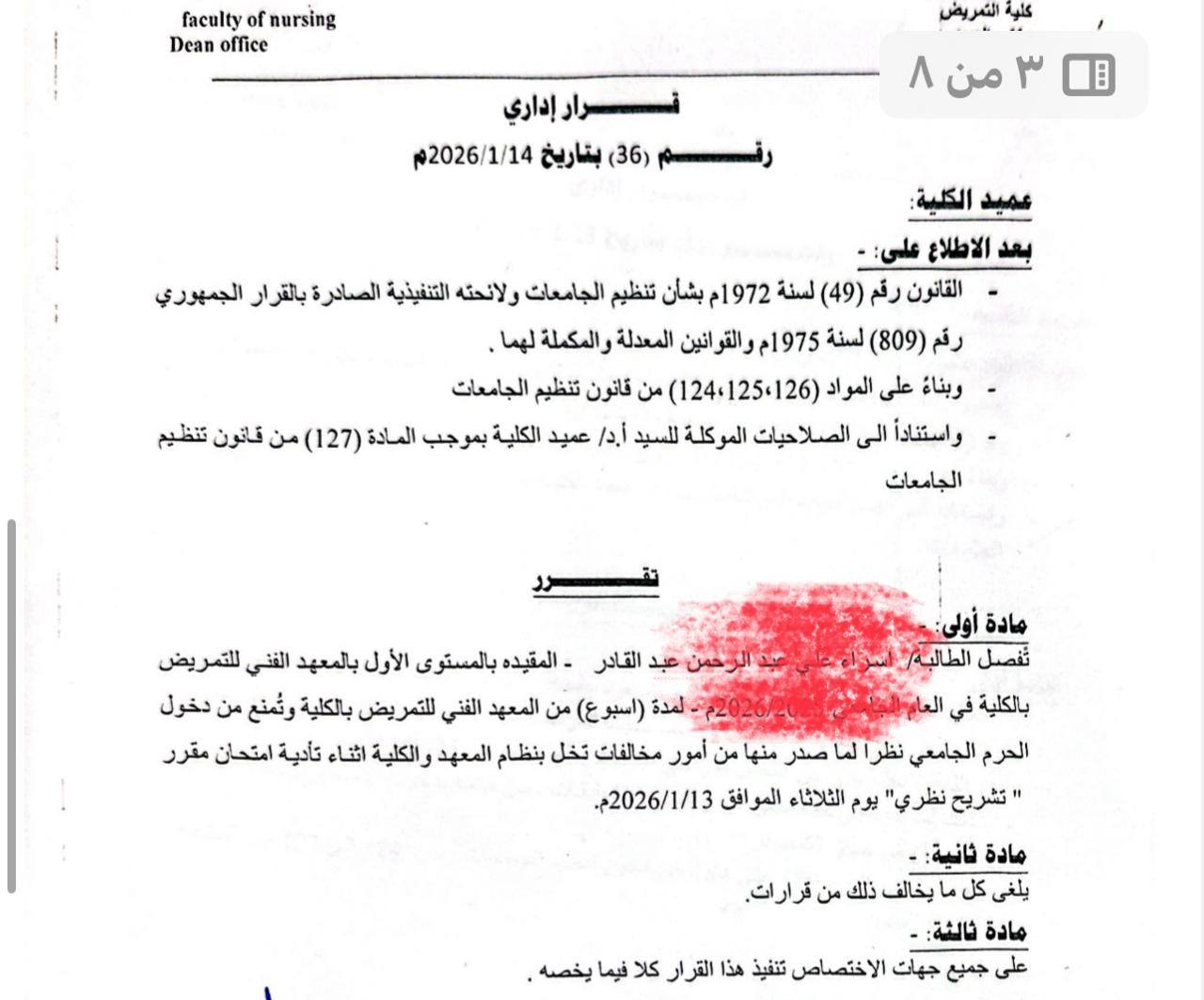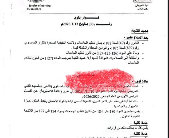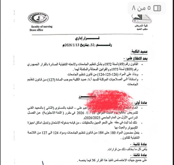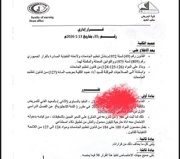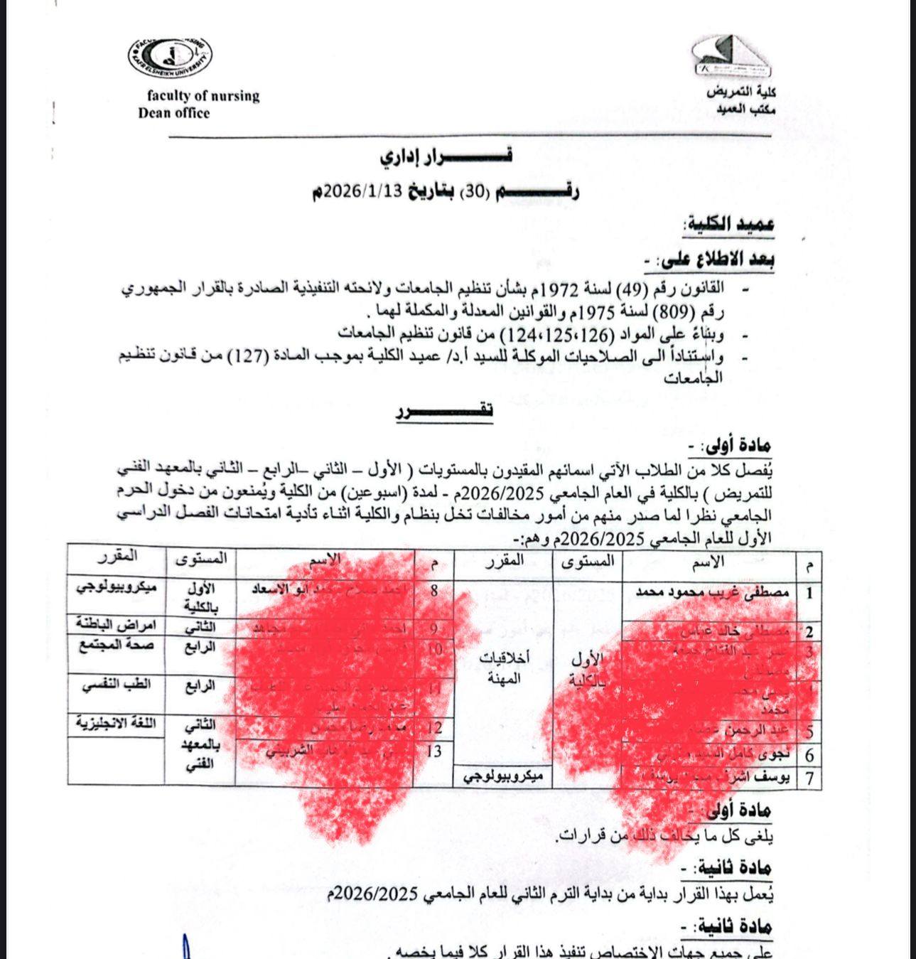 قرارات تأديبيه لمخالفة قواعد الامتحانات