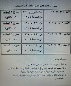 علي جميع الطلاب اتباع الإجراءات الاحترازيه وارتداء الكمامه والحفاظ على المسافات الامنه