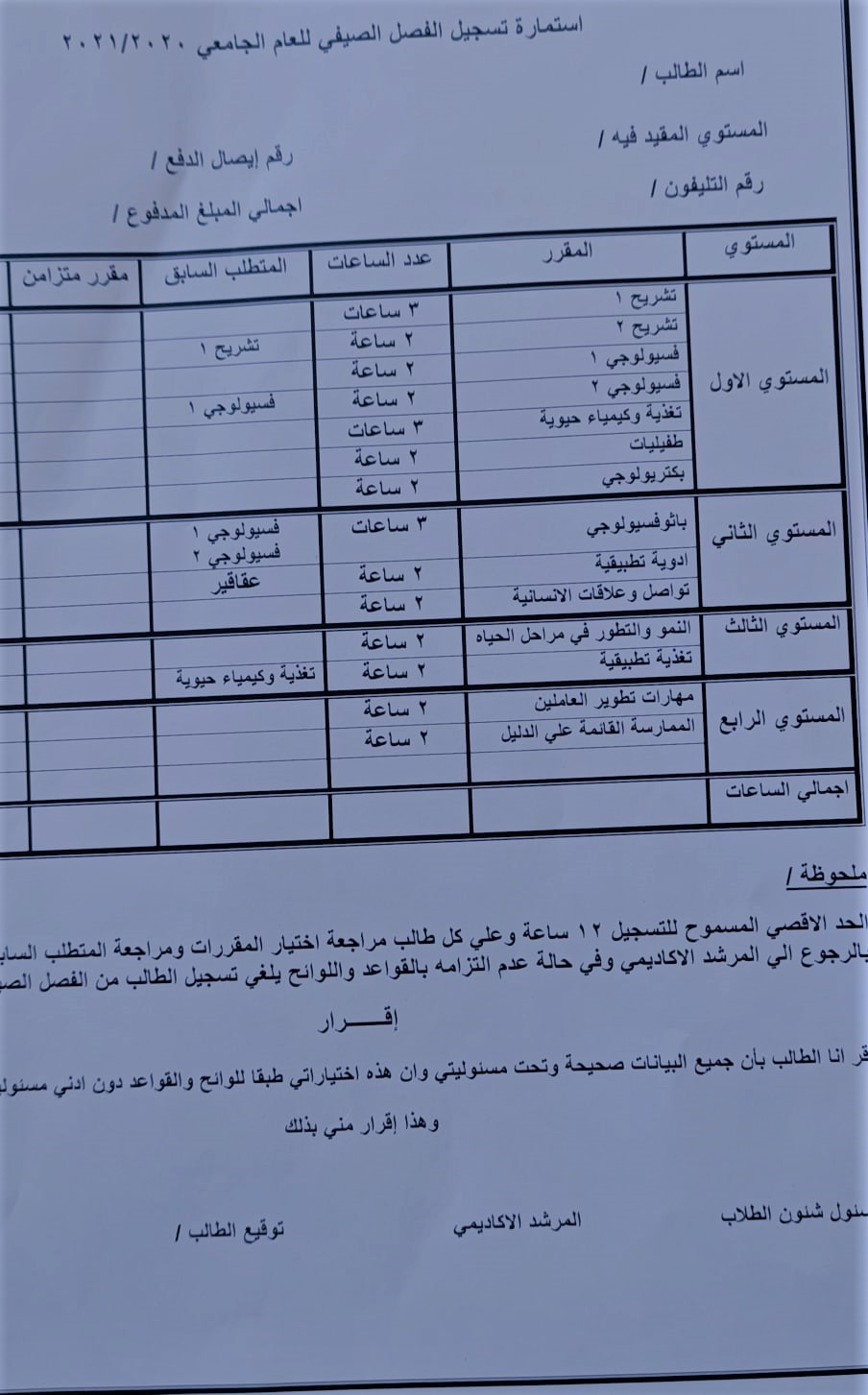 وعلي الطلاب الراغبين في التسجيل في الفصل الصيفي التوجه إلي شئون الطلاب غدا الاثنين الموافق 25/7/2021 انشاء الله