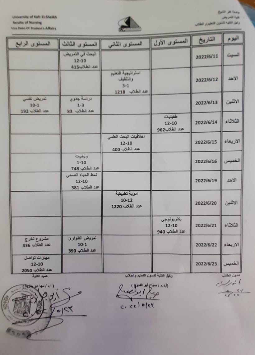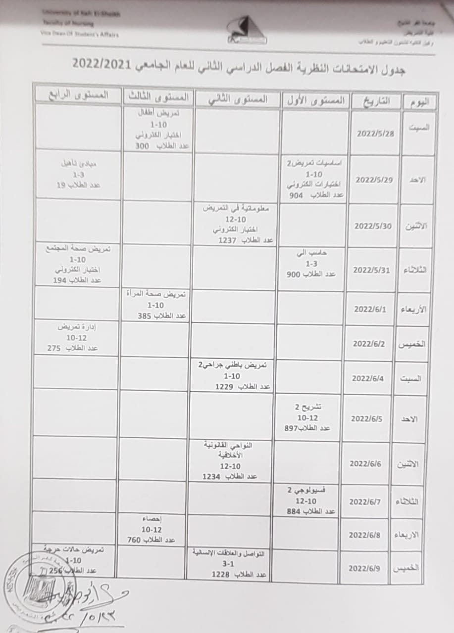 جدول الفصل الدراسي الثانى ٢٠٢٢