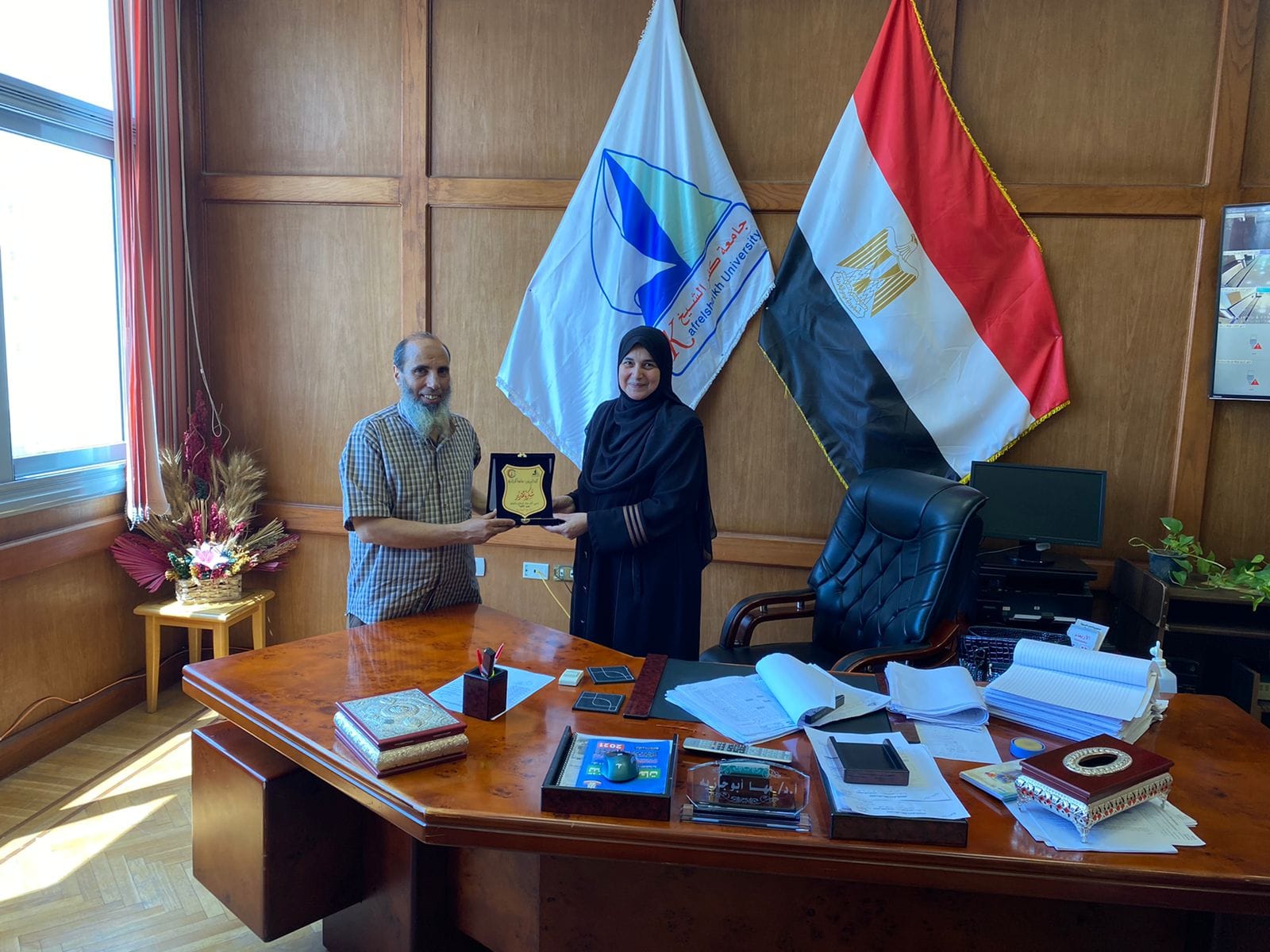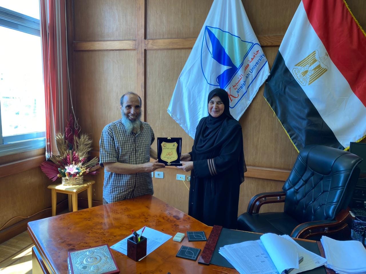 ا.د/ مها ابو جازية عميدة الكليه بتكريم أ. د / محمد عوض رئيس كنترول المستوى الثانى