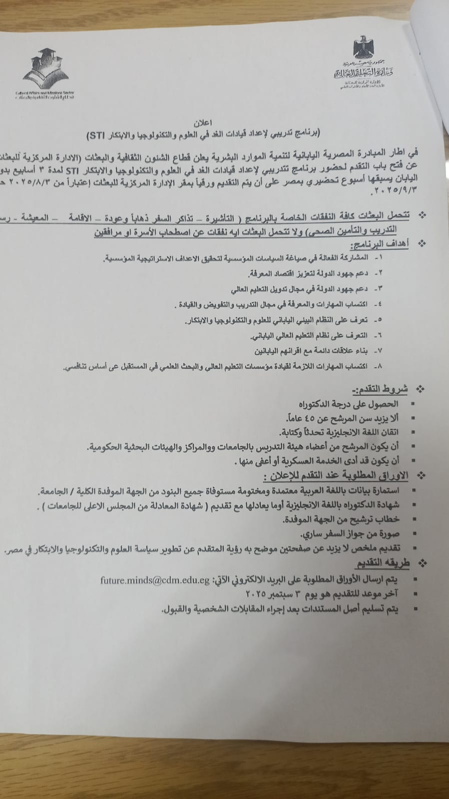 إعلان عن برنامج تدريبى للسادة أعضاء هيئة التدريس