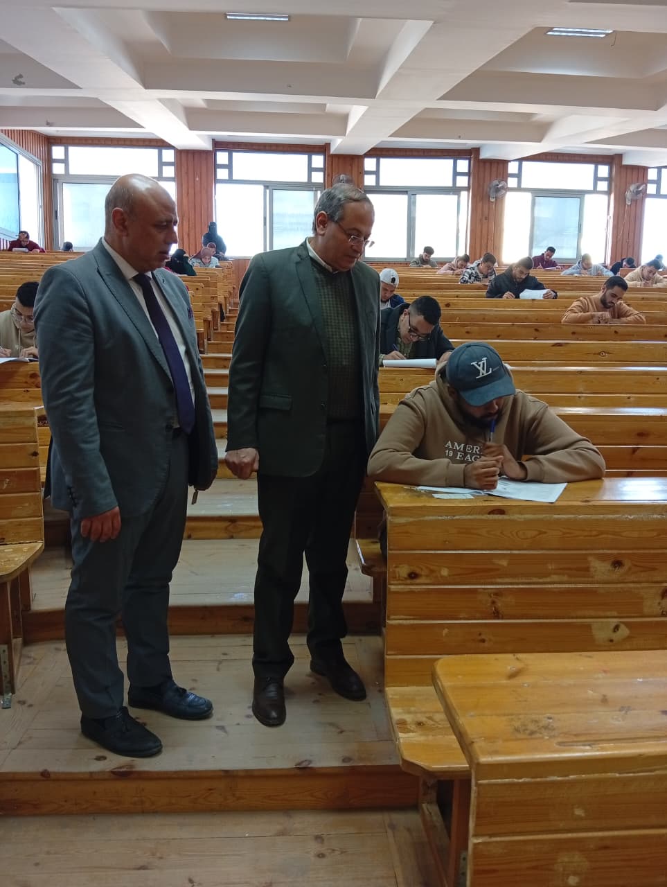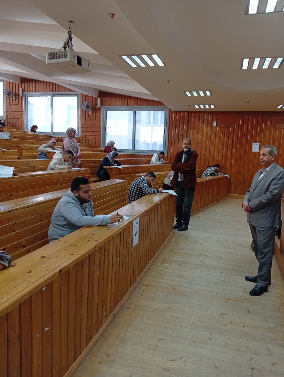 قام اليوم الأحد الموافق 2025/12/21م السيد أ. د / رمضان الدومانى عميد الكلية والسيد أ.د/ عبدالعزيز السيد وكيل الكلية لشئون التعليم والطلاب بجولة تفقدية لمدرجات الكلية لمتابعة امتحانات الفصل الدراسي الاول للعام الجامعي 2025/2026م وبحضور كلا من السيد الأستاذ / فوزى محمد عبده أمين الكلية و السادة أعضاء هيئة التدريس والهيئة المعاونة , حيث حرص السيد ا.د/ رمضان الدوماني على تواجده مع الملاحظين والمراقبين لمتابعة حسن سير الامتحانات والتأكد من توفير أجواء ملائمة للطلاب أثناء أداء الامتحانات متمنيا النجاح والتوفيق لطلابنا الاعزاء بجميع المستويات