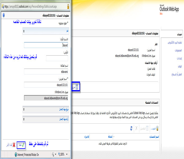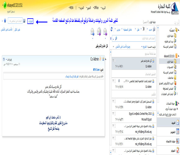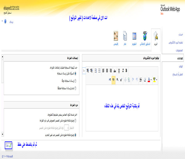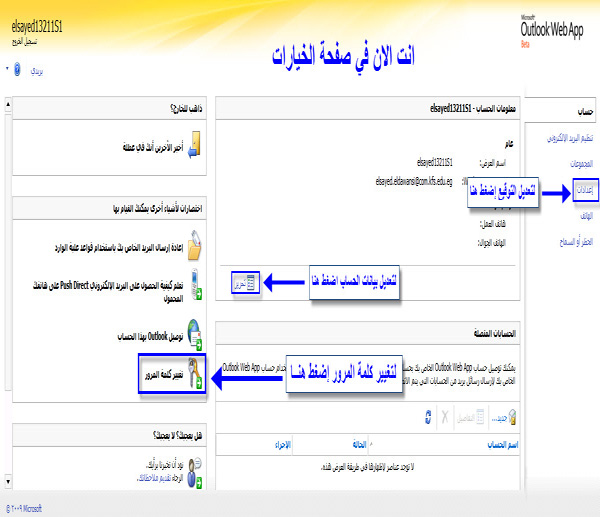 لتعديل التوقيع او بيانات الحساب او تغيير كلمة المرور اتبع التعليمات الموجودة بالصورة ادناه :