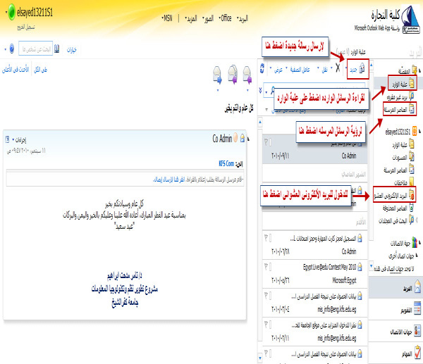 كيفية الدخول إلى البريد الالكتروني للجامعة :