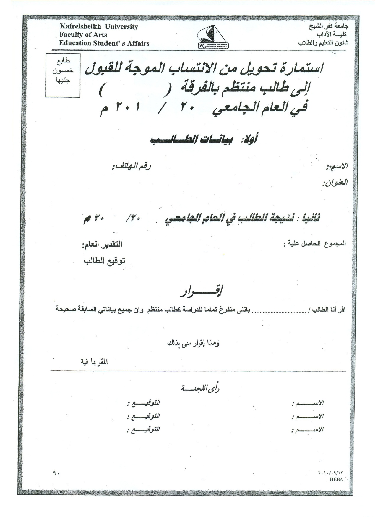 - يرجع المتقدم بالطلب الى رئيس القسم لمراجعة صحة