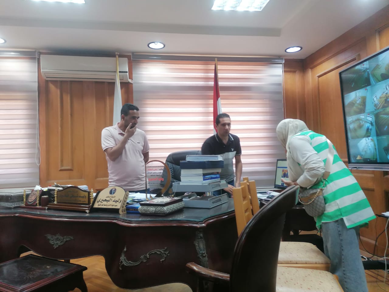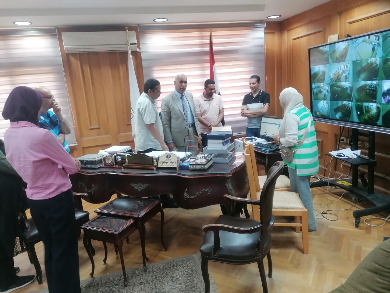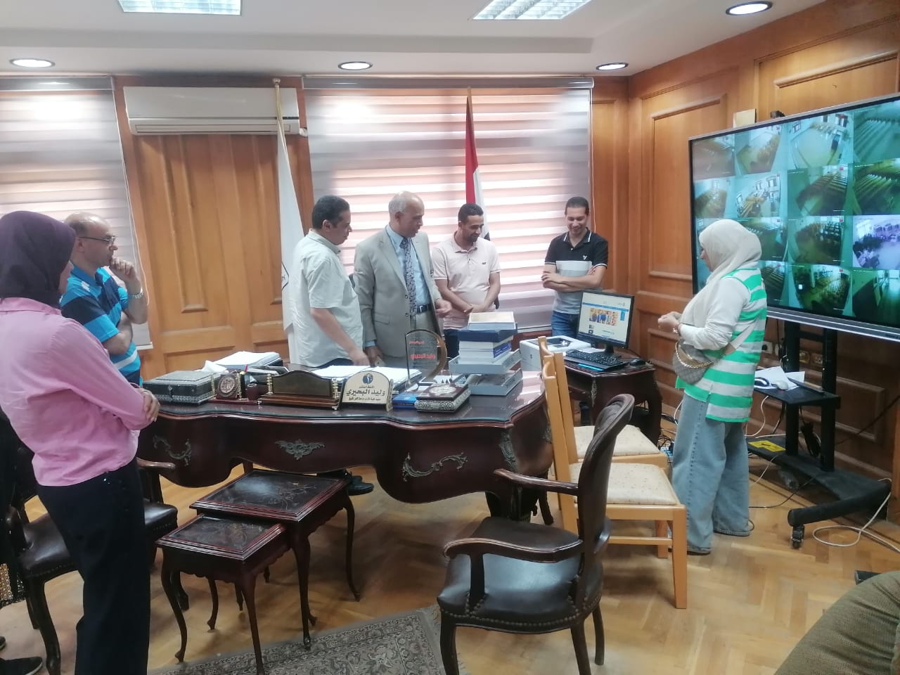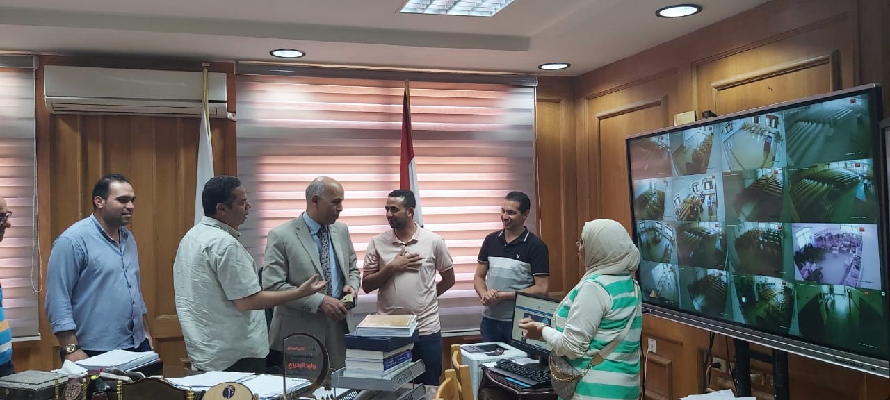 وذلك بحضور ا د عمرو ابو هاني المدير التنفيذي للمعلومات والمهندسه تحية ابراهيم محمد مدير الوحده المركزية للبواية الإلكترونية ود شهاب مدحت محمد نائب مدير وحدة البوابة الالكترونية بالجامعه والمهندسة زينه حسن وحضور د محمود مصطفي عيسى بمكتب نائب رئيس الجامعة لشئون الدراسات العليا والبحوث