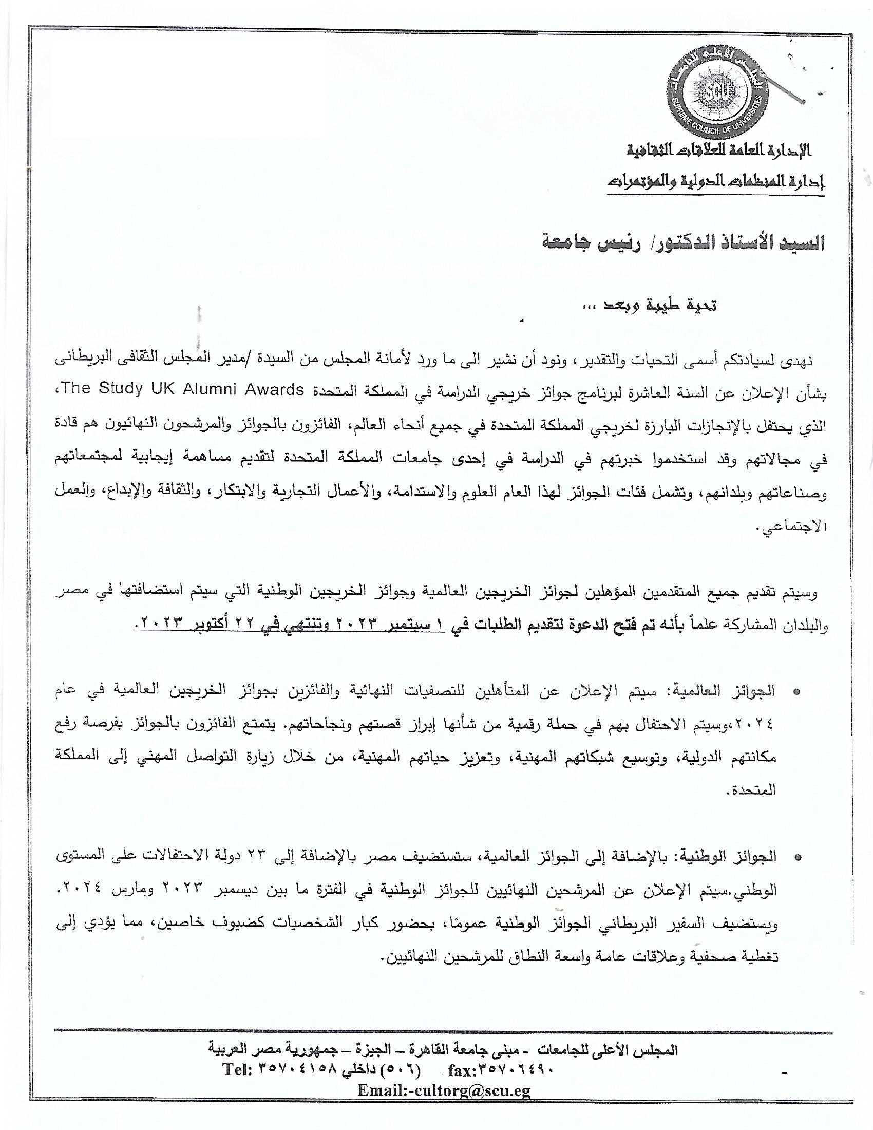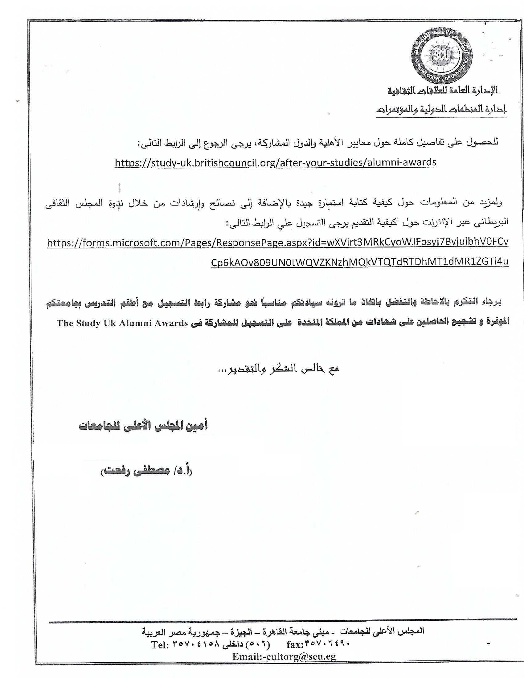 الاعلان عن السنة العاشرة لبرنامج جوائز خريجى الدراسة فى المملكة المتحدة