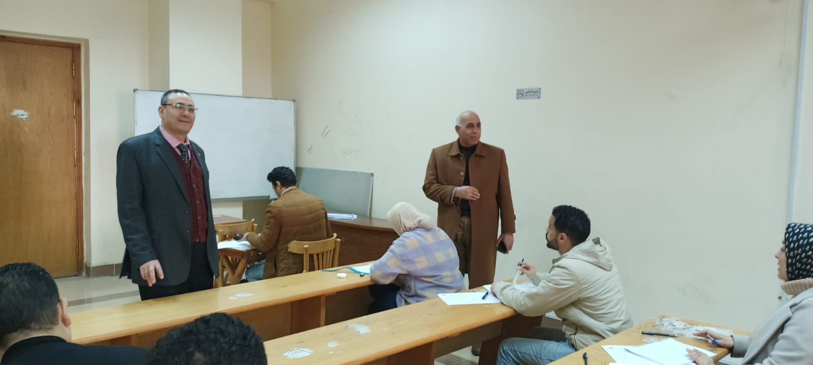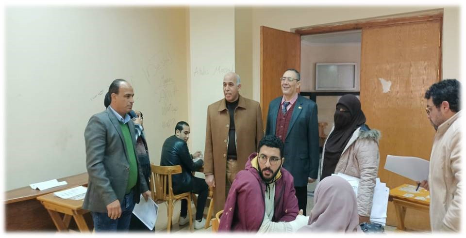 نائب رئيس الجامعة لشئون الدراسات العليا يقوم بجولة تفقدية لإمتحانات الدراسات العليا بكلية التجارة