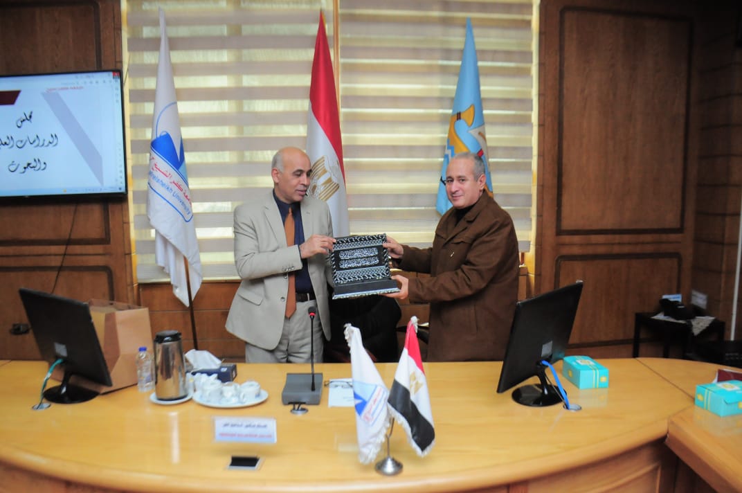 عُقد مجلس الدراسات العليا والبحوث اليوم الاحد الموافق 18 فبراير 2024م برئاسة السيد أ.د/ إسماعيل إسماعيل إبراهيم - نائب رئيس الجامعة لشئون الدراسات العليا والبحوث وفي بداية الجلسة رحب سيادته بالساده أعضاء المجلس من عمداء ووكلاء الكليات وأيضا الدكتورة/ وفاء محمد عبدالسلام - مدير عام الدراسات العليا بالجامعة ثم قام سيادته بعرض الموضوعات الشهرية للدراسات العليا والبحوث والعلاقات الثقافية حيث استهل السيد أ.د/ نائب رئيس الجامعة لشئون الدراسات العليا المجلس للساده الأعضاء بمتابعة تنفيذ الجداول الدراسية بكليات الجامعة وأكد سيادته على ضرورة توفير المناخ المناسب للطلاب وتحقيق أقصي درجة من الانضباط أثناء الدراسة ثم تم عرض جدول أعمال المجلس لموضوعات الدراسات العليا من تسجيل لدرجتي الماجستير والدكتوراه وتعديل لبعض لجان الإشراف علي الرسائل العلمية وإعتماد الخطة الدراسية لدرجتي الماجستير والدكتوراه لبعض كليات الجامعة وأيضا فتح باب الإلتحاق بالدراسات العليا ببعض كليات الجامعة ثم قام سيادته بعرض موضوعات صندوق دعم البحوث منها تقديم الدعم المادي للباحثين لإجراء وإستكمال بعض التجارب العلمية ثم قام السيد النائب بعرض موضوعات العلاقات الثقافية منها الموافقة علي منح دراسية لبعض من الهيئة المعاونة بالجامعة للسفر إلي بعض الدول وإستكمال الدراسة ثم قدم السيد النائب الشكر والتقدير والإمتنان إلي السيد الأستاذ الدكتور / محمد عاطف هلال - وكيل كلية الطب البيطري لشئون الدراسات العليا والبحوث لما قدمه طوال فترة تواجده في المنصب وذلك لإنتهاء مدة توليه منصب وكيل الكلية لفترتين متتاليتين وقد إختتم السيد النائب الجلسة بالإشادة للسادة أعضاء المجلس علي المجهود المبذول بشكل مستمر ودائم في خدمة قطاع الدراسات العليا وخدمة الجامعة.
