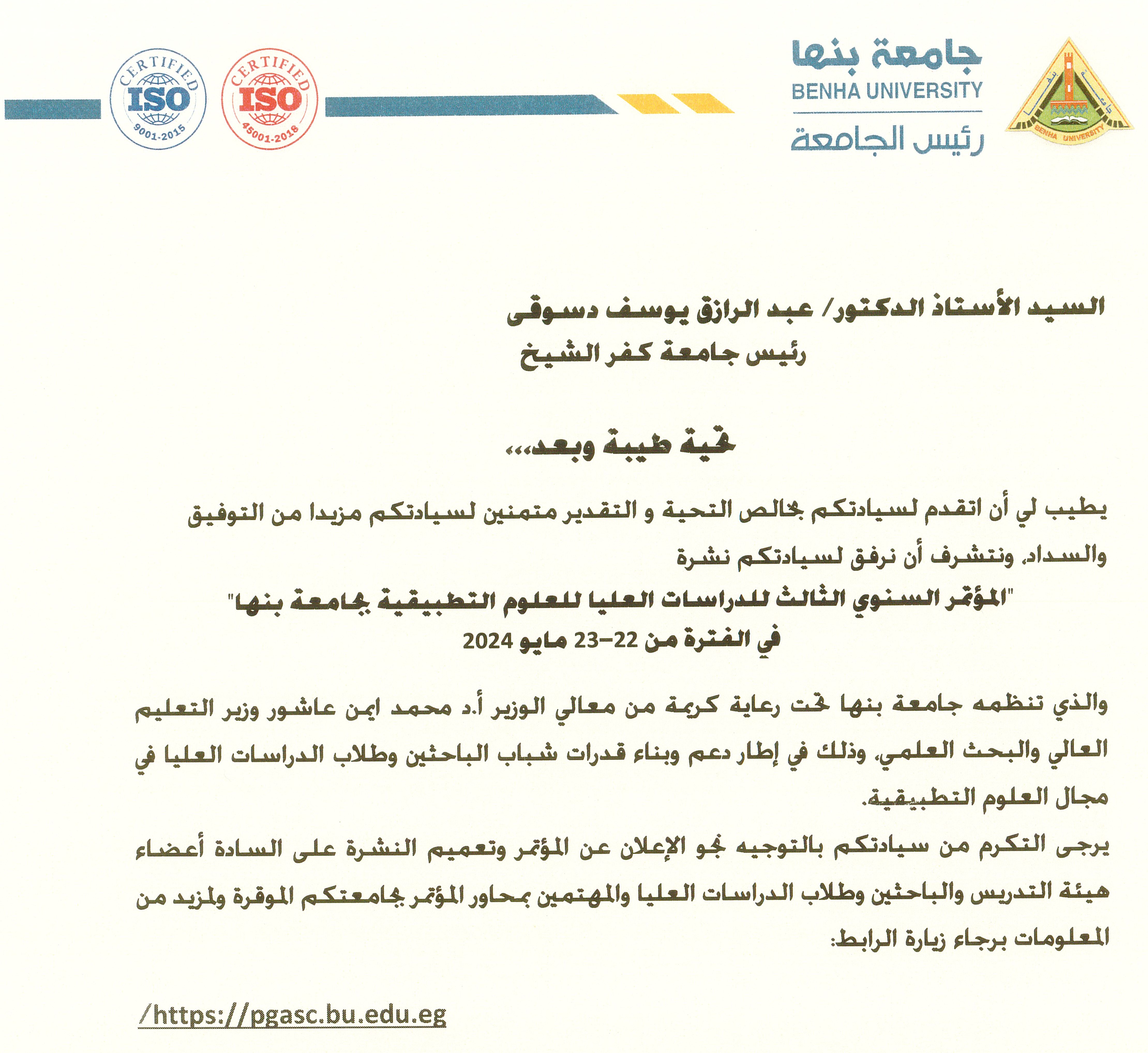 المؤتمر السنوي الثالث للدراسات العليا للعلوم التطبيقية بجامعة بنها