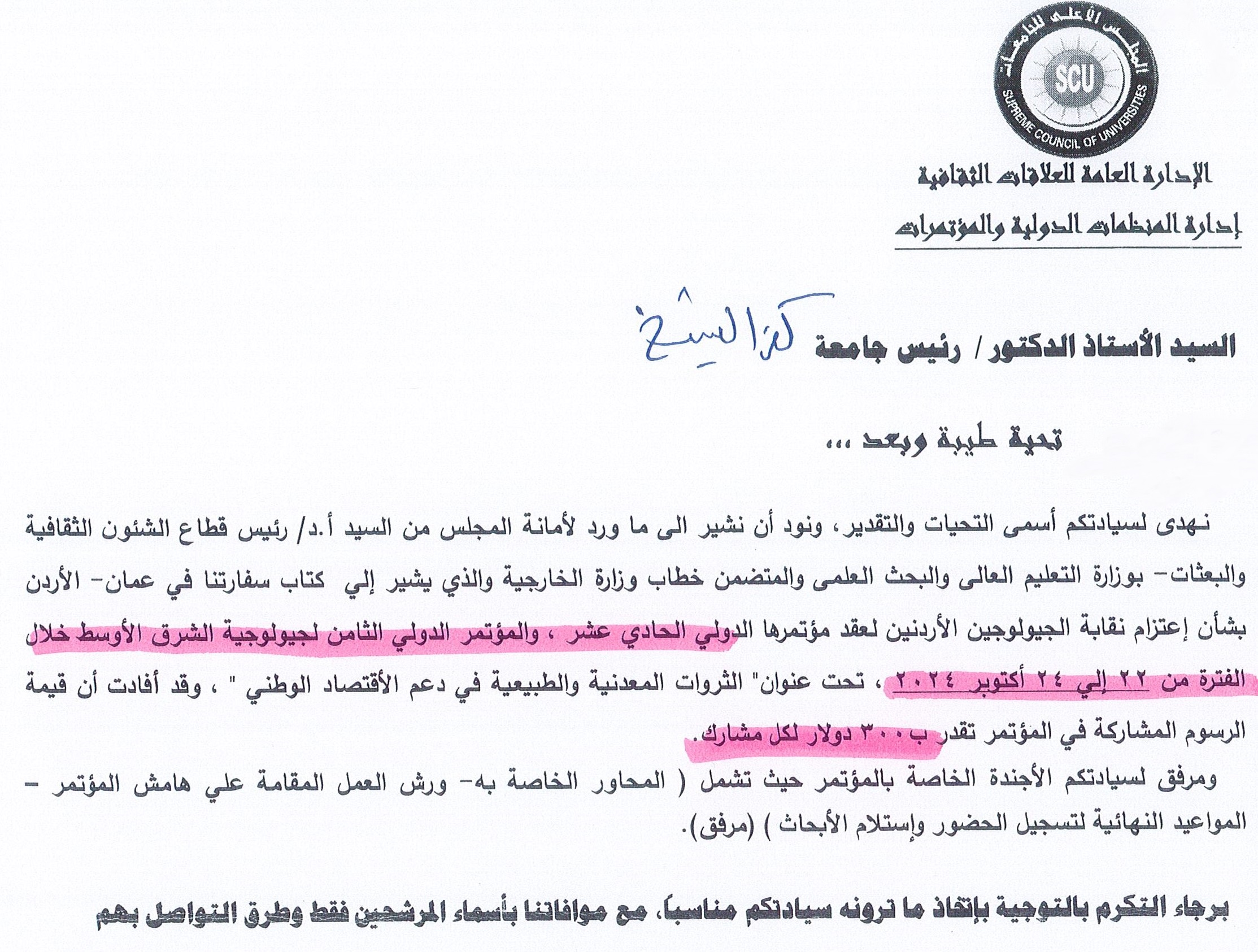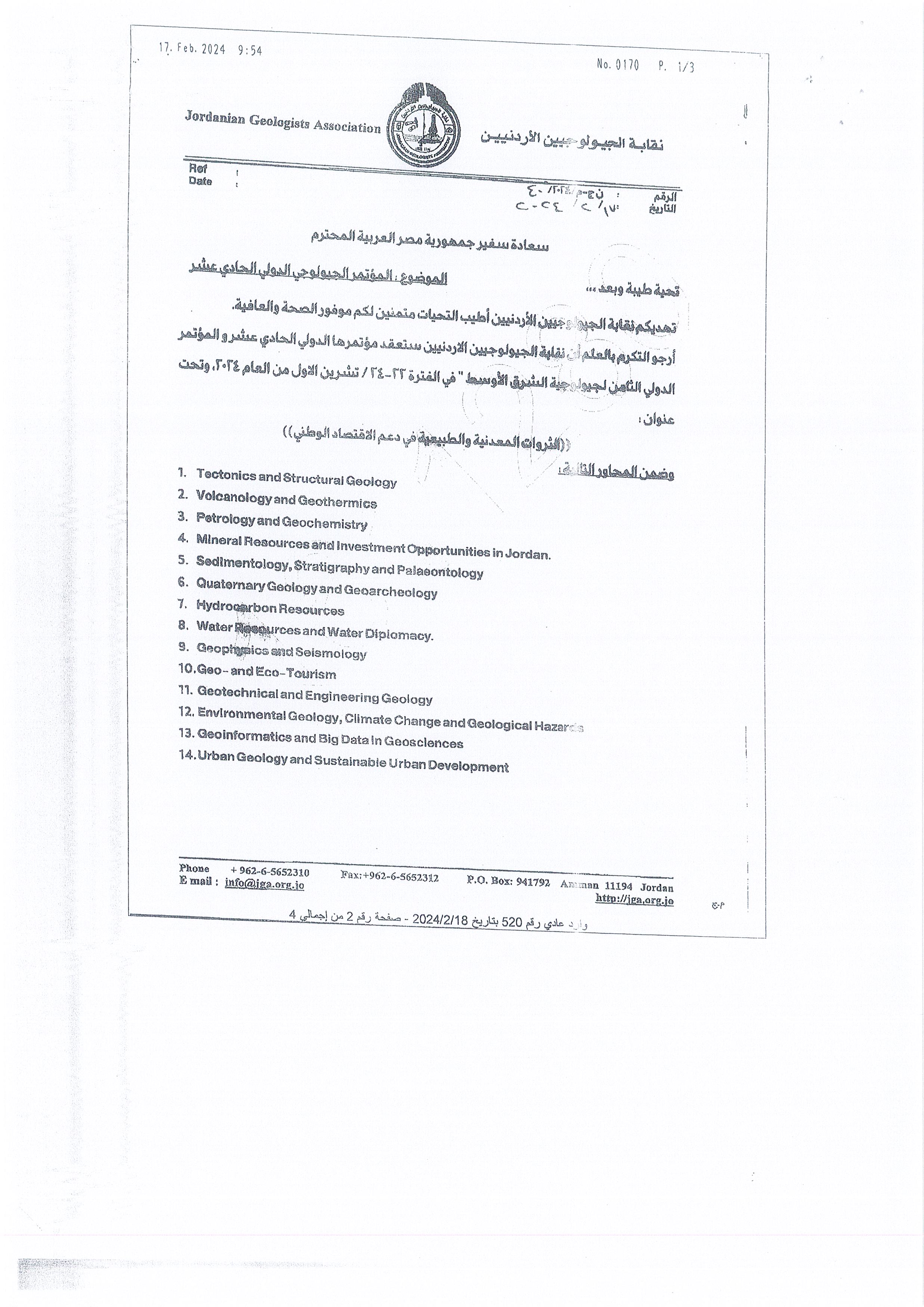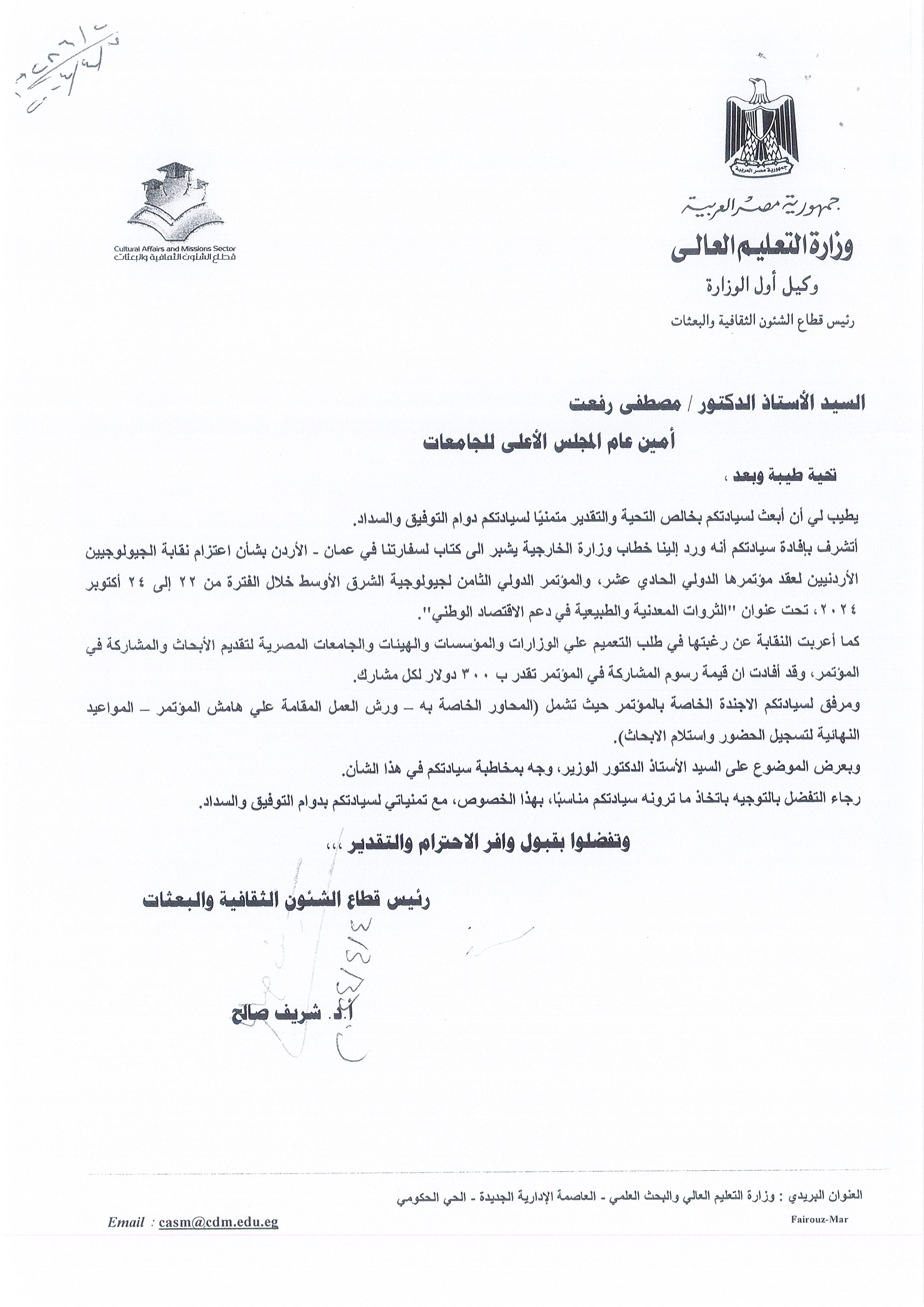 المؤتمرها الدولي الحادي عشر ، والمؤتمر الدولي الثامن لجيولوجية الشرق الأوسط