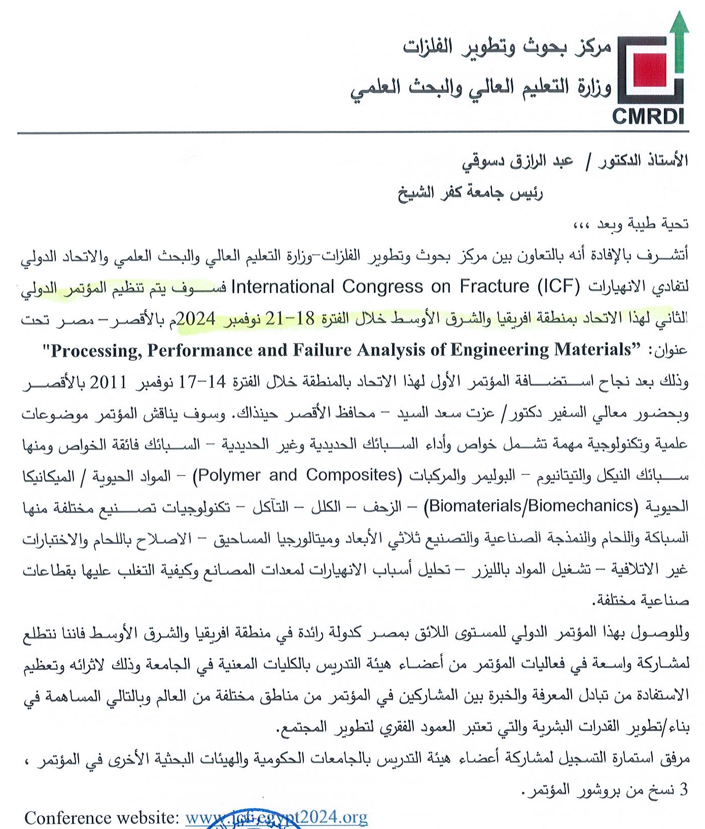 المؤتمر الدولي الثاني بمنطقة افريقيا والشرق الأوسط بالتعاون بين مركز بحوث وتطوير الفلزات وزارة التعليم العالي والبحث العلمي والاتحاد الدولي لتفادي الانهيارات