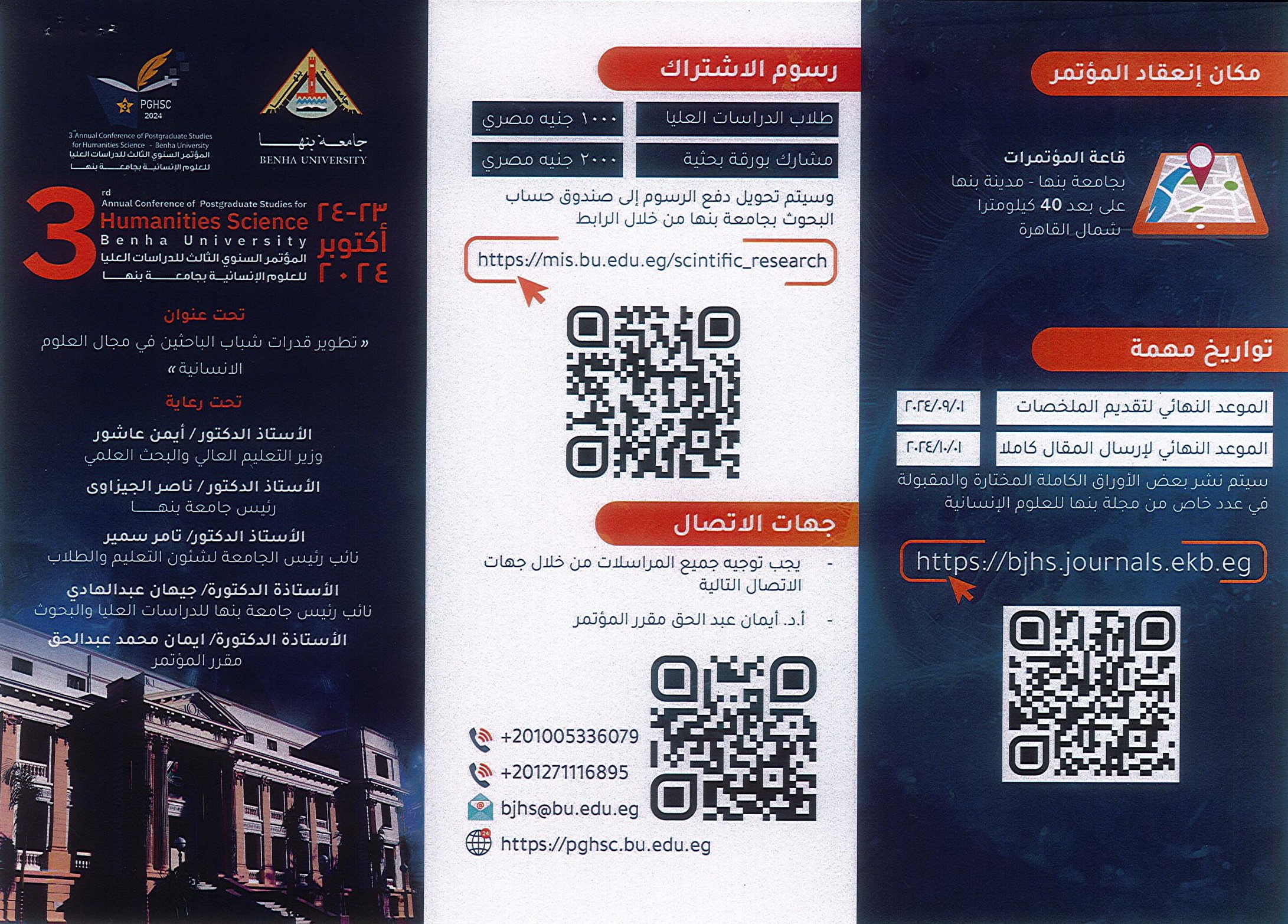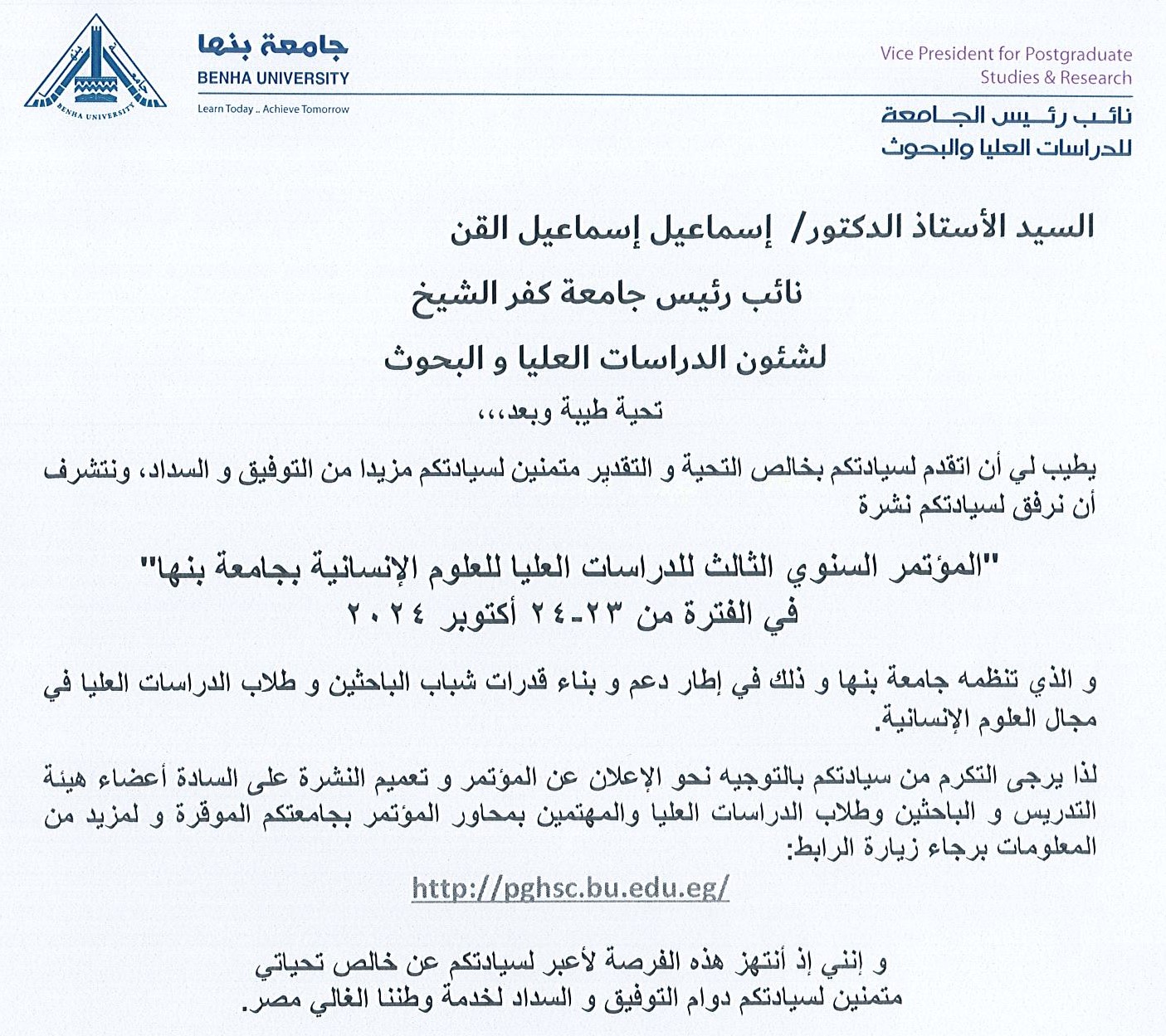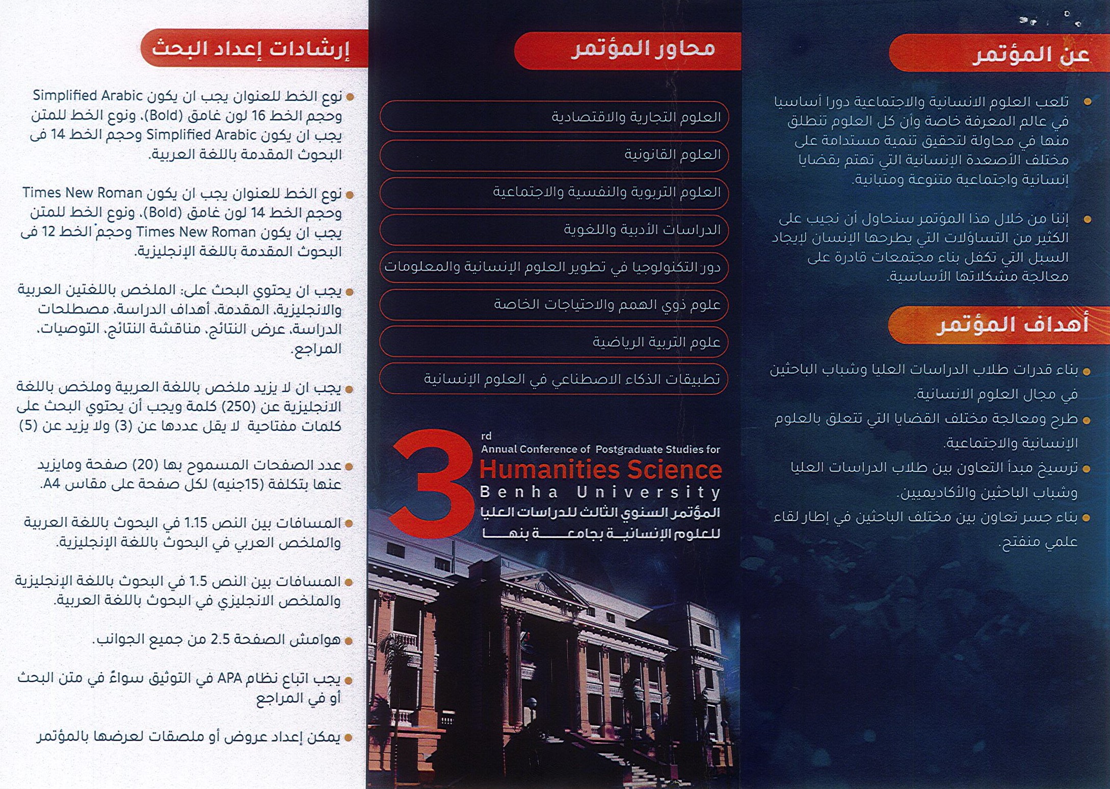 المؤتمر السنوي الثالث للدراسات العليا للعلوم الإنسانية بجامعة بنها