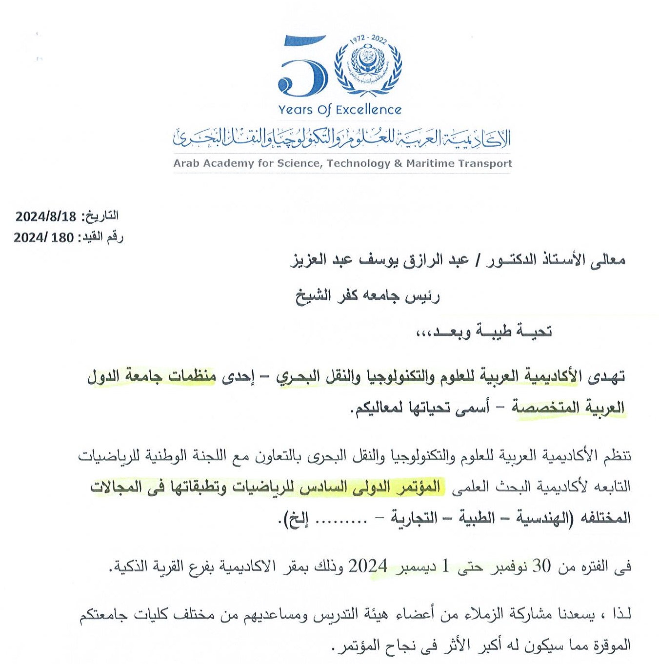 كلمة نائب رئيس الجامعة