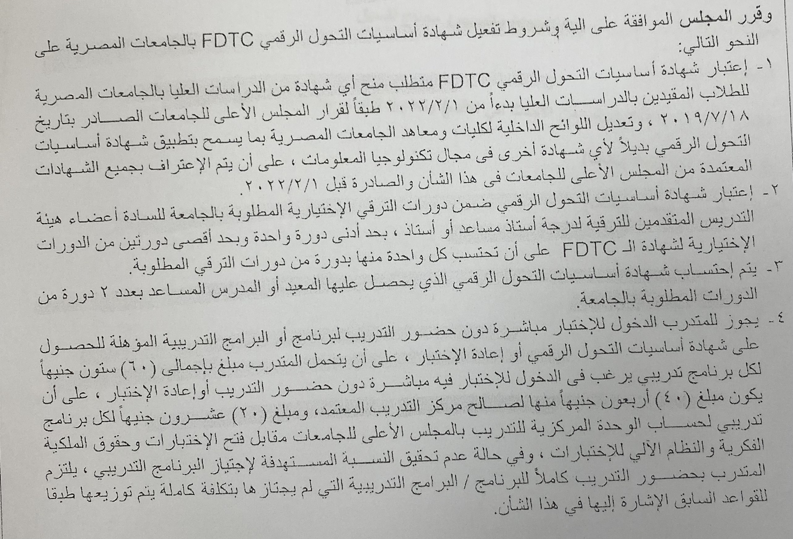 قرر المجلس الأعلى للجامعات تفعيل شهادة "أساسيات التحول الرقمي" في الجامعات المصرية على النحو التالي:
