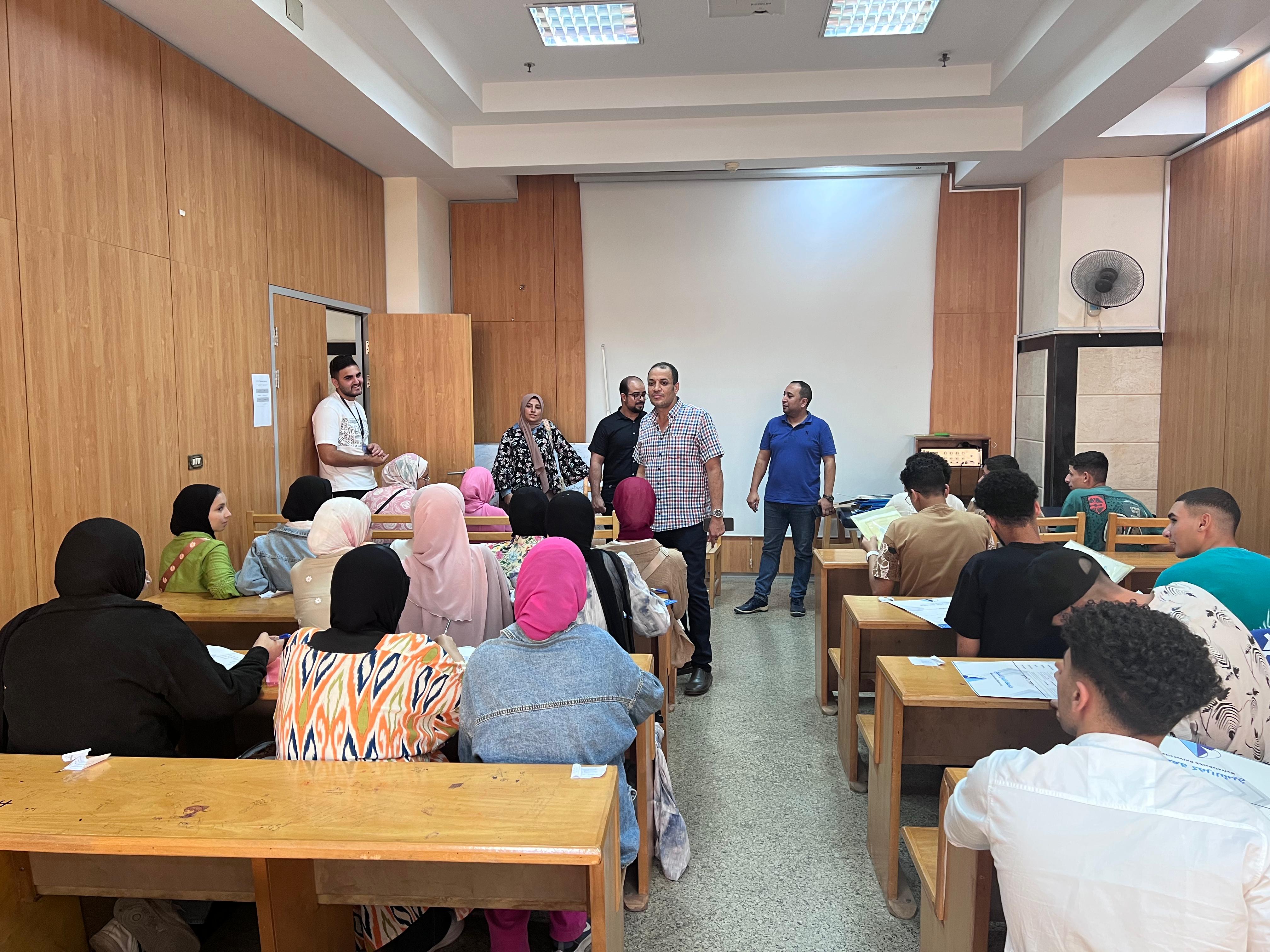 قام السيد أ.د/ فايز الشامى - عميد الكلية والسيد أ./ محمد نجم أمين الكلية بمتابعة اختبار اللياقة والمقابلة الشخصية للطلاب الجدد
