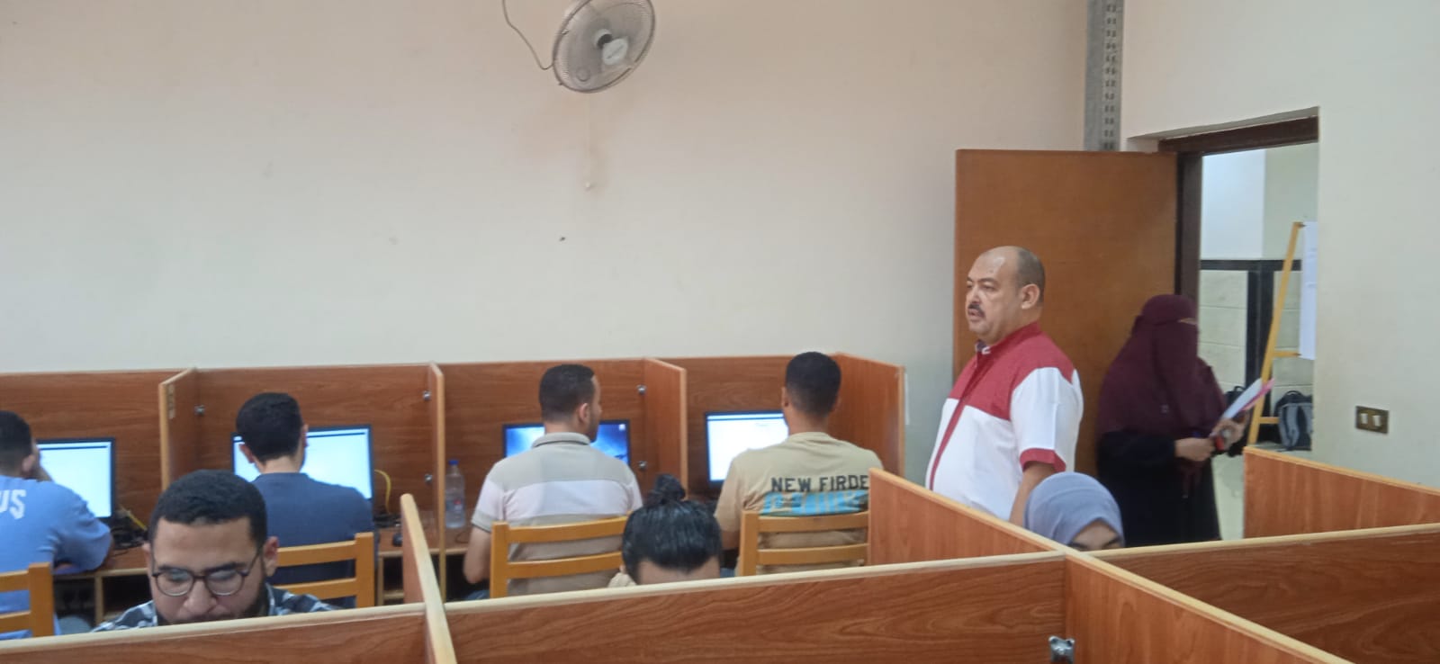 وقد قام السيد أ.د/ محمود عويضة - عميد الكلية بتفقد لجان الامتحانات للاطمنان على الطلاب و التأكد من حسن سير الامتحان