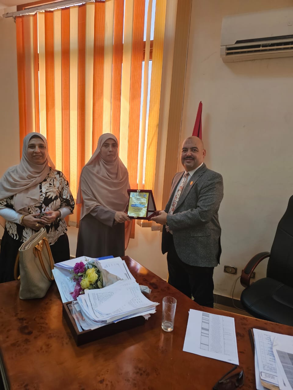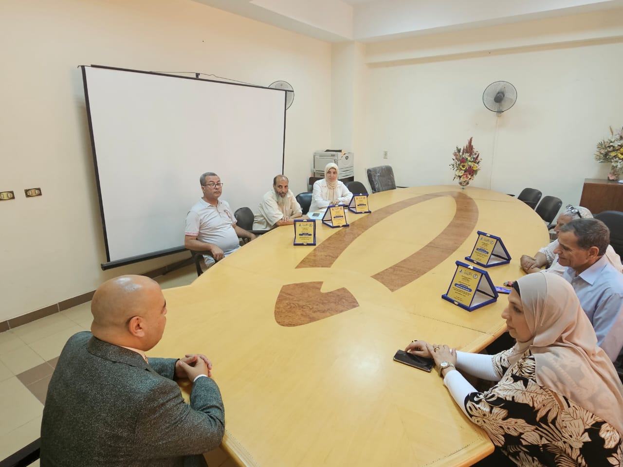 ا.د / محمود عويضه عميد الكليه يرافقه السيد أ.د/ أنيس غيط و السيده أ.د/ ايمان عبد الفتاح وكيل الكليه للدراسات العليا و البحوث بعمل تكريم للساده روؤساء الكنترولات بالكليه لتعاونهم المثمر وسرعه ظهور النتائج ودقتها ، كما تم تكريم المهندسه / دينا