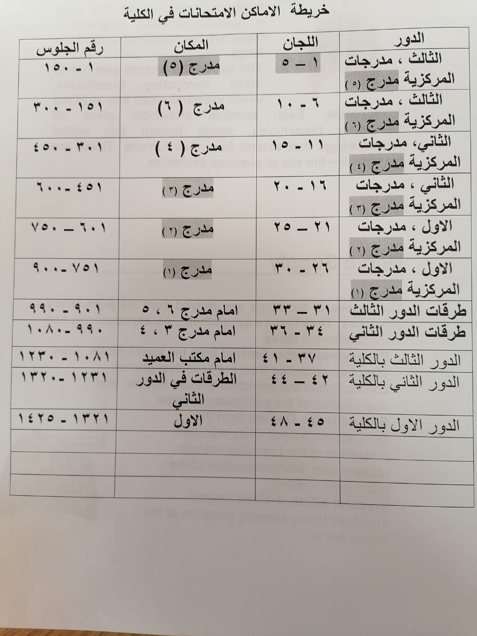 أماكن لجان الامتحانات للمستوى الأول والثانى