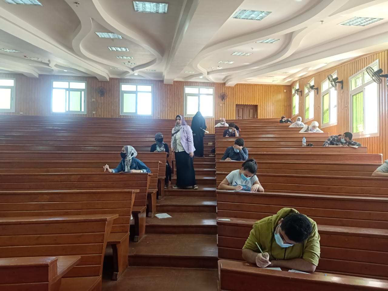 تفقد اليوم الأستاذ الدكتور /فايز فاروق الشامي ، عميد الكلية و يرافقه كل من الأستاذة الدكتورة /إيمان عبدالفتاح الحصرى ، وكيل الكلية لشئون التعليم والطلاب والأستاذ الدكتور /محمود محمد عويضه ،وكيل الكلية لشئون خدمه المجتمع وتنمية البيئة سير الامتحانات بالكلية
