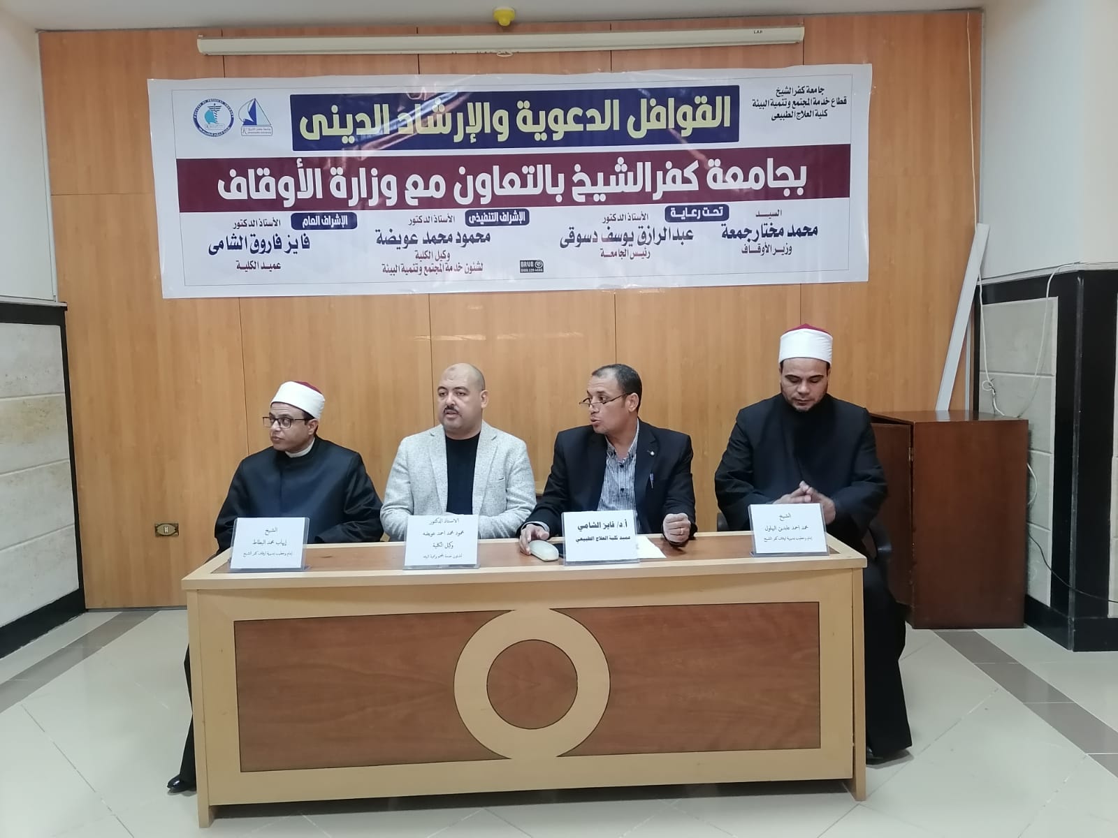 تحت رعاية السيد الأستاذ الدكتور / محمد مختار جمعه - وزير الأوقاف و السيد الاستاذ الدكتور /عبدالرازق دسوقي .. رئيس الجامعة و السيد الأستاذ الدكتور / فايز الشامى .. عميد كلية العلاج الطبيعى و السيد الأستاذ الدكتور / محمود عويضة .. وكيل الكلية لشؤون خدمة البيئه وتنمية المجتمع وبالتعاون مع قطاع خدمة المجتمع و تنمية البيئة