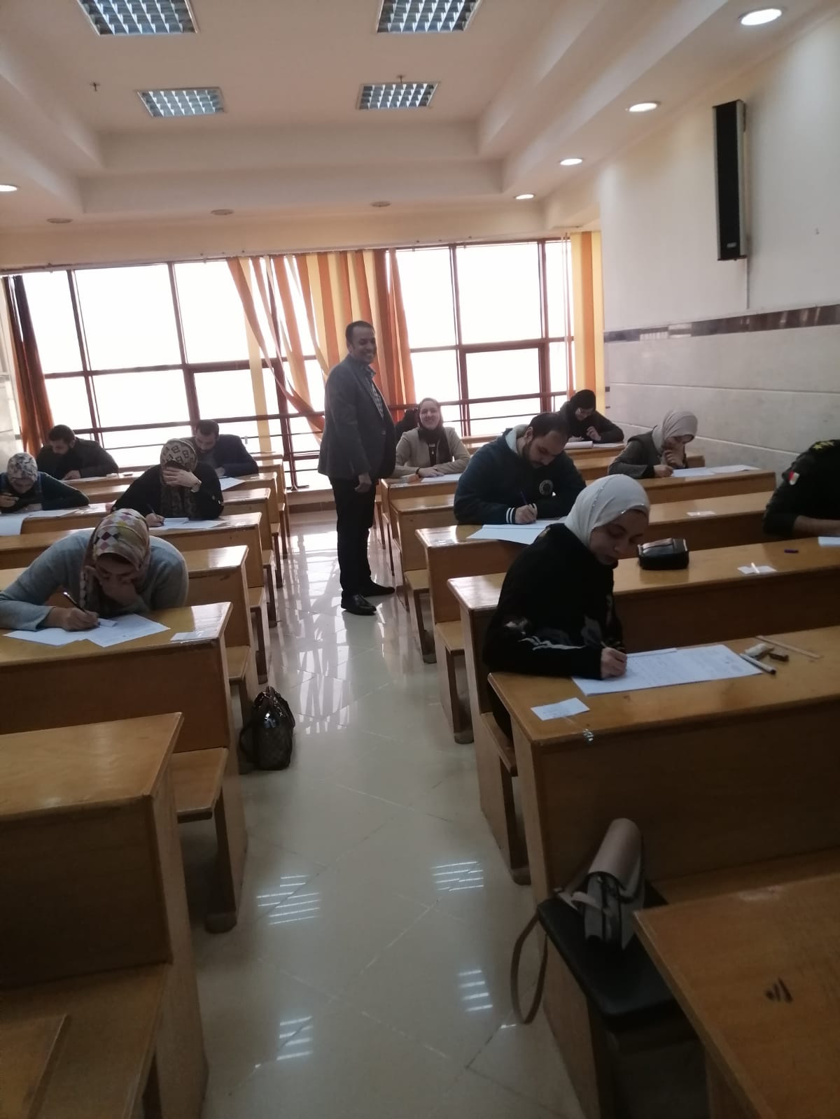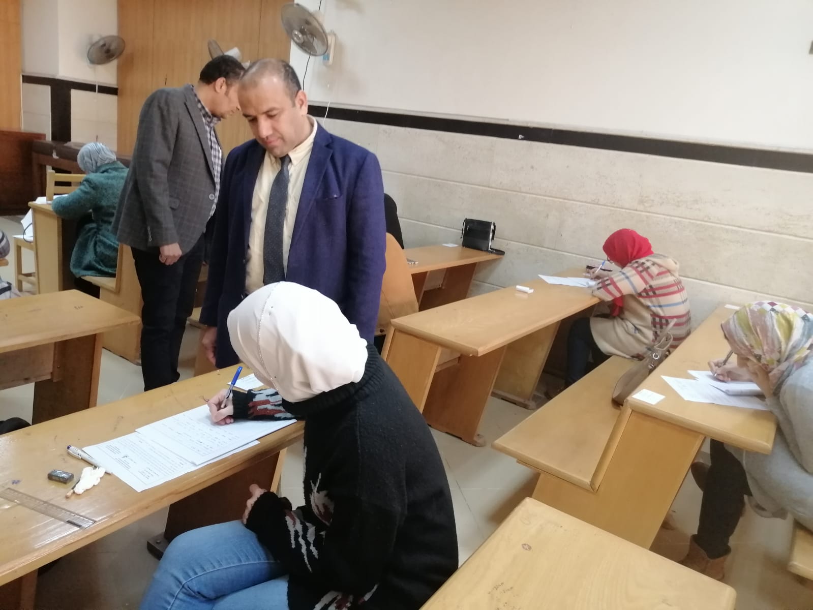 وقد قام السيد أ.د/ فايز الشامى عميد الكلية و أ.د/ عبد العزيز شريف وكيل الكلية لشئون الدراسات العليا بالمرور على لجان الامتحانات للإطمنان على الطلاب و التأكد من حسن سير الامتحان