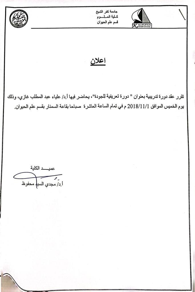 اعلان عن دورة تدريبية بعنوان (التعريف بالجودة)