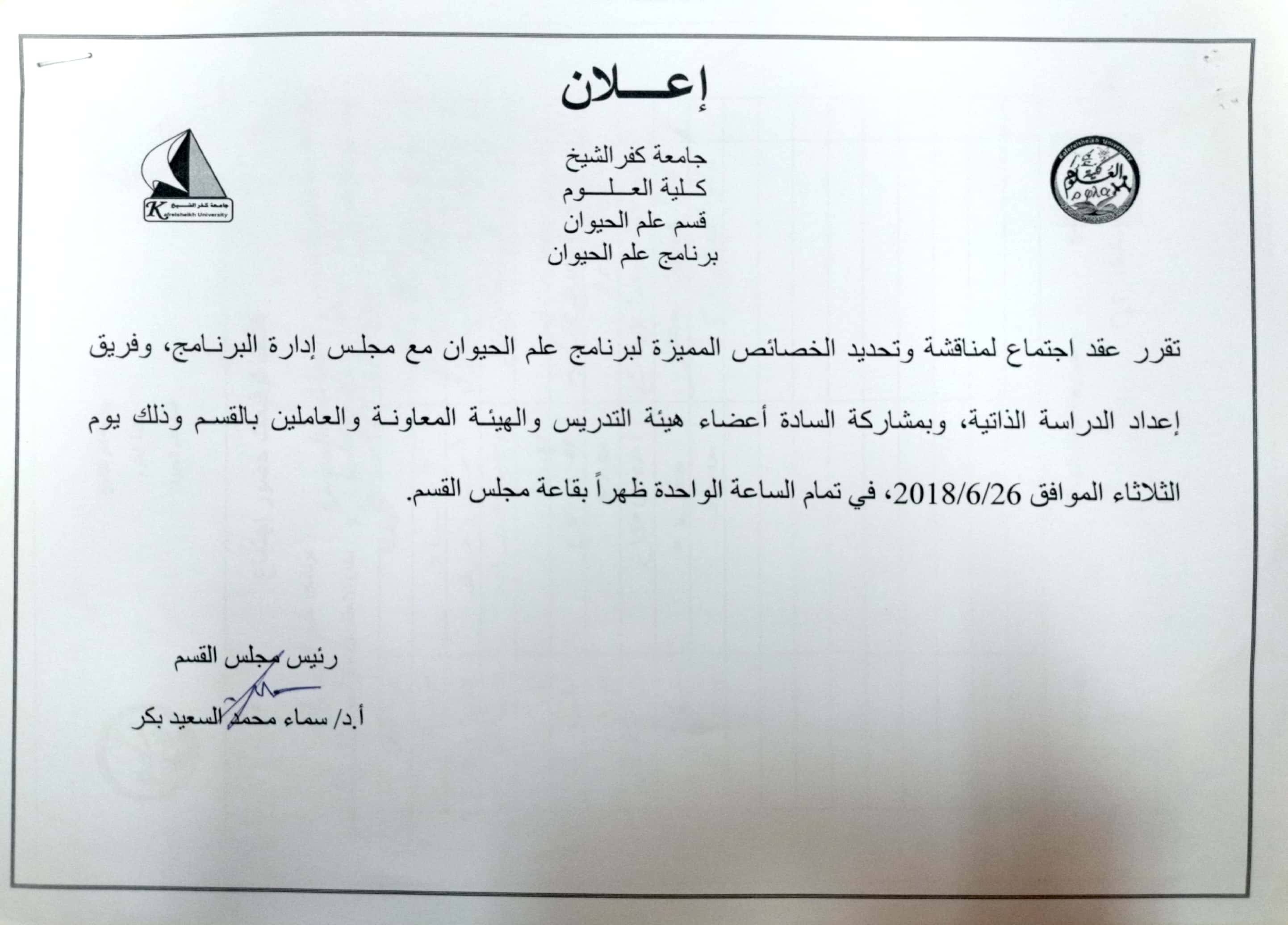 اجتماع لمناقشة وتحديد الخصائص المميزة لبرنامج علم الحيوان
