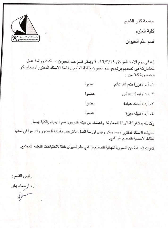ورشة عمل للمشاركة فى تصميم برنامج علم الحيوان