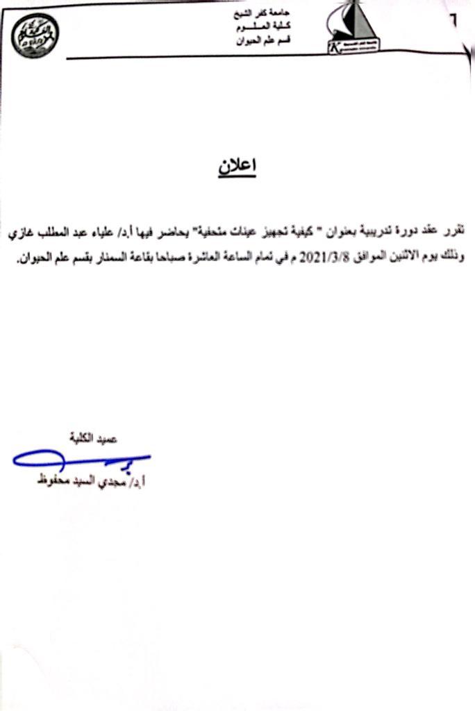 اعلان عن دورة تدريبية بعنوان (كيفية تجهيز عينات متحفية)
