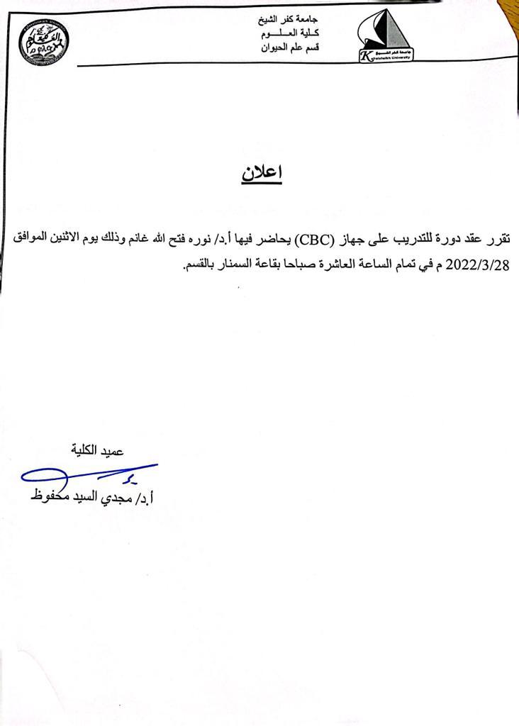 اعلان عن دورة (التدريب على جهاز (CBC)
